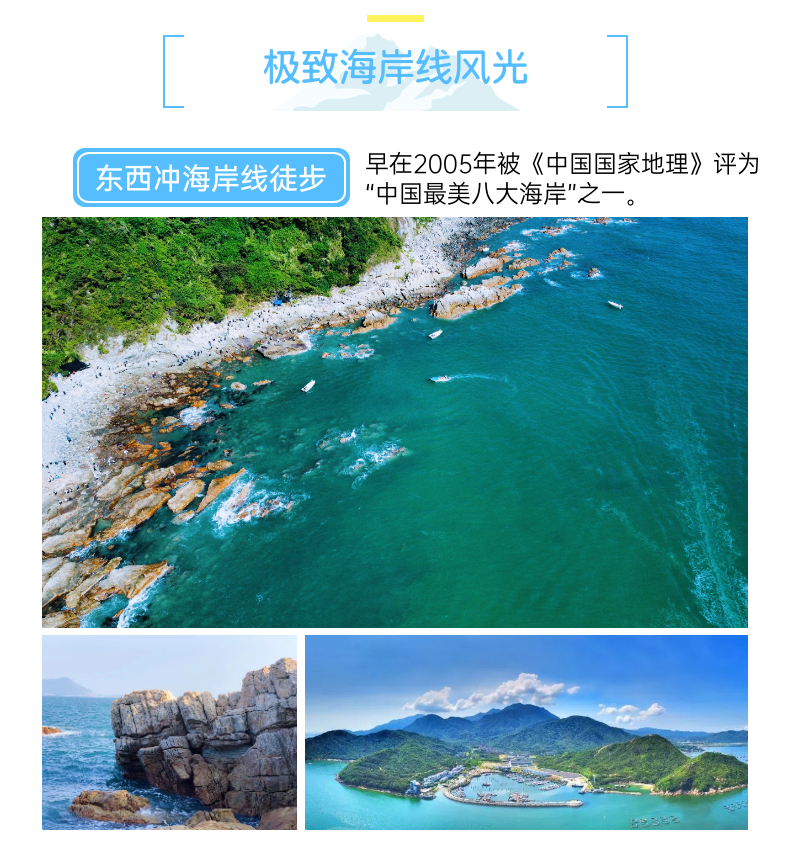 岛屿礁石沙滩岩洞桥柱等海积海蚀一应俱全
