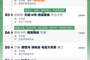 第3天:新都桥-天路18弯-格聂南线(铁匠山、纳海、格聂神山、天然野温泉)-然日卡村(收取旅游费用总额70%的损失费)