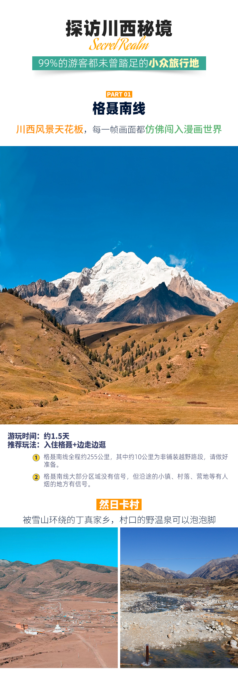 格聂南线+措普沟+姊妹湖+鱼子西+S434机场路+红海子+折多山6日游
