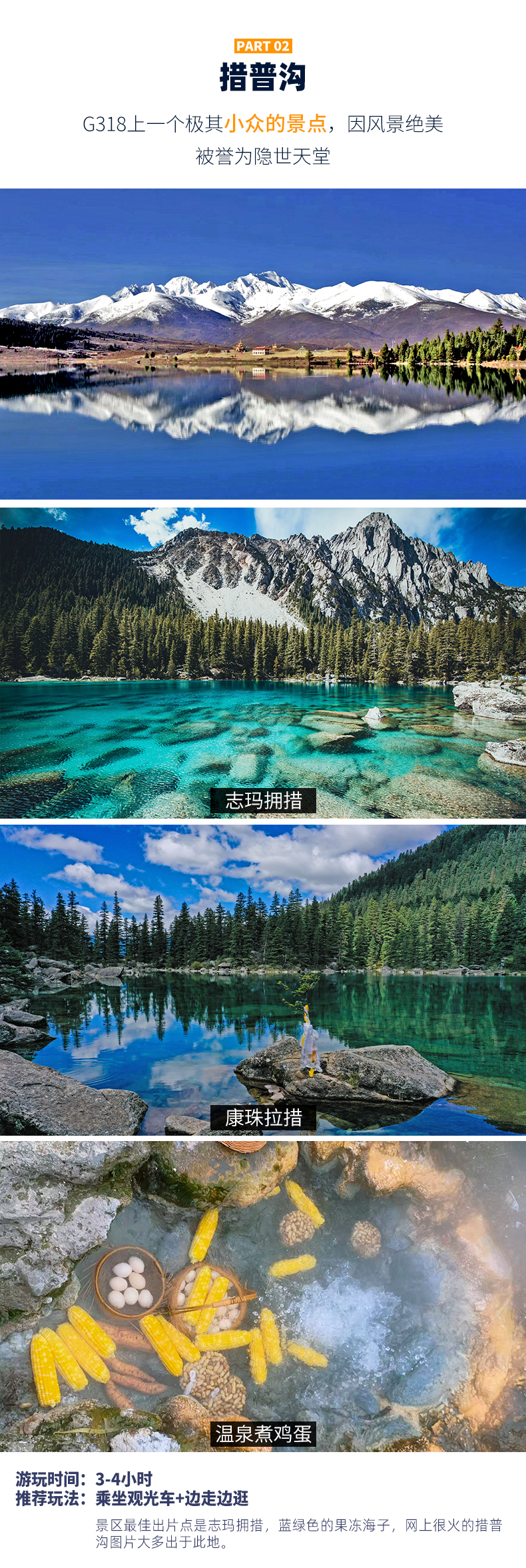 4、景交:格聂三宝门票30元/人(可选),措普沟景区光车90元/人(必须),鱼子西、红海子等清洁费10-30元/人暂未收取,如产生需自理。