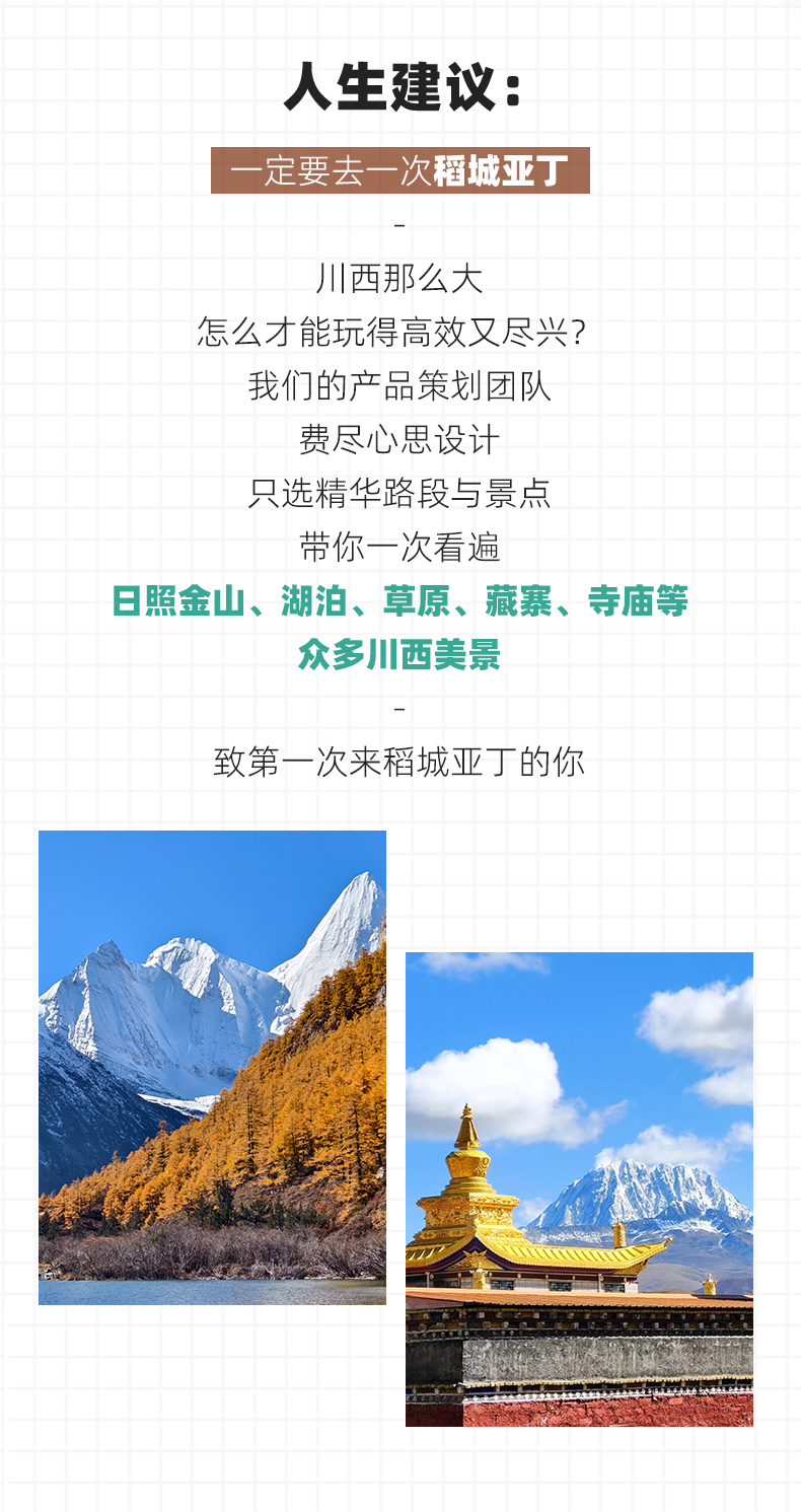 第3天:新都桥-天路18弯-理塘·勒通古镇-长青春科尔寺-海子山-稻城白塔-稻城县(收取旅游费用总额70%的损失费)