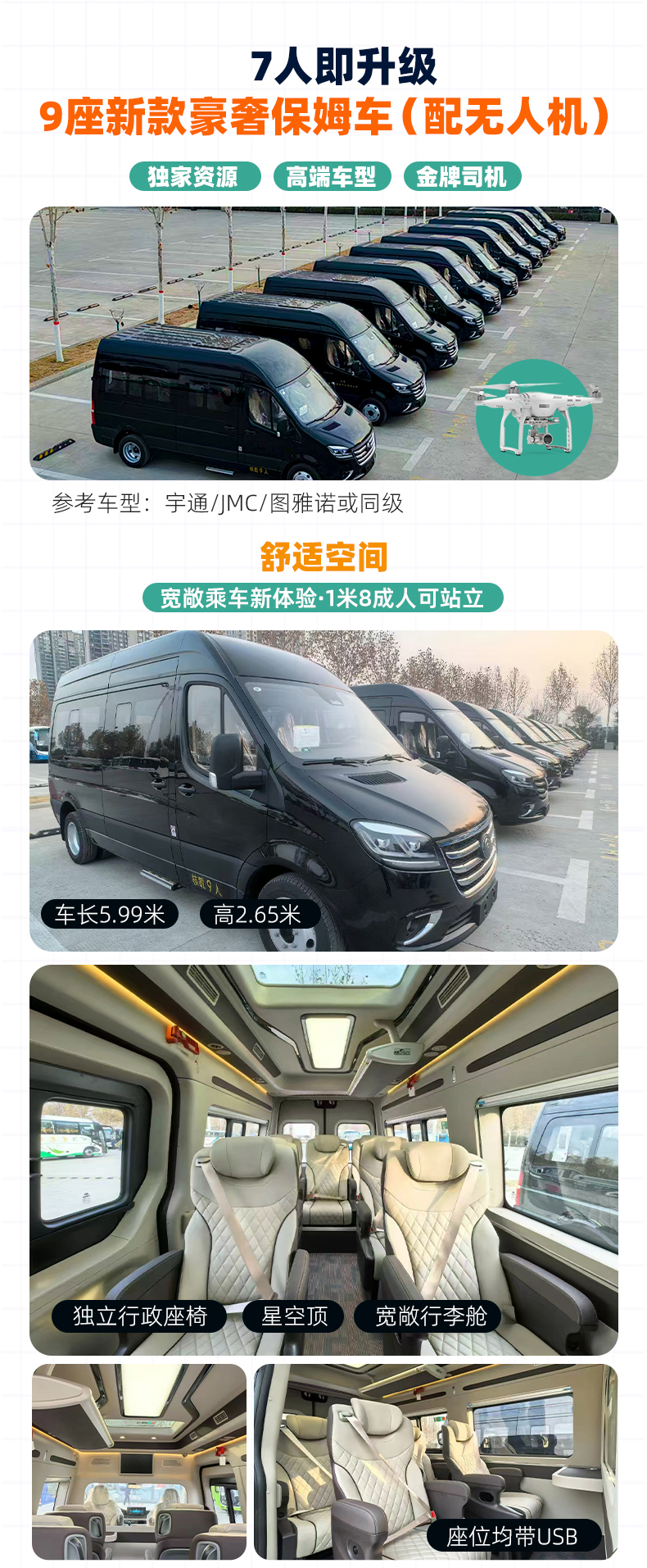 7-8位队员升级9座豪奢保姆车(配无人机);
