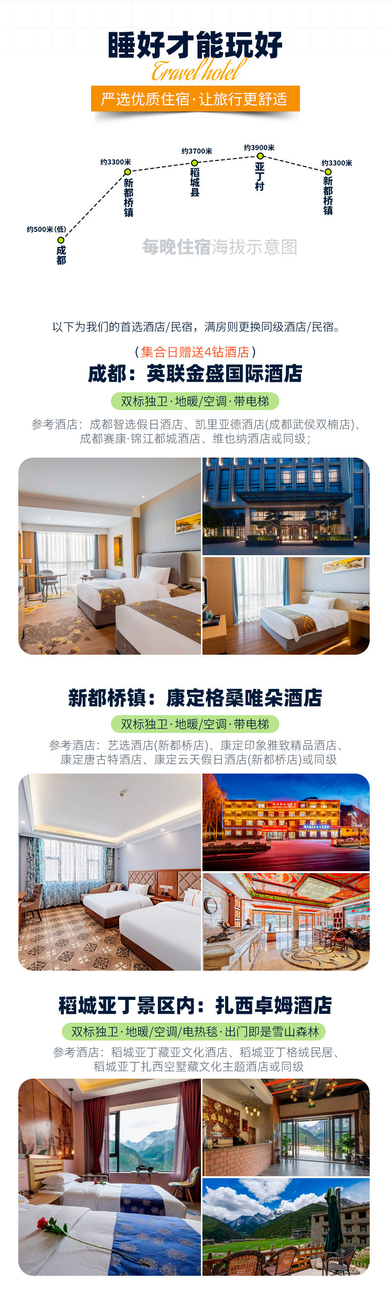 2、住宿:全程5晚住宿(含集合日1晚赠送4钻酒店、不住不退);
