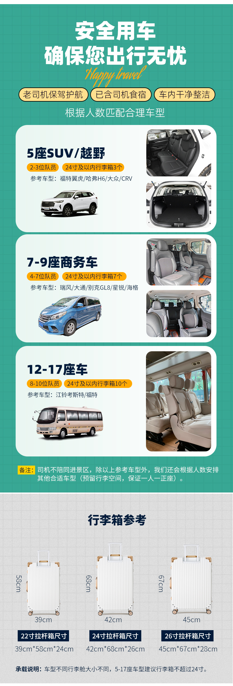 2-3位队员乘坐5座SUV/越野;