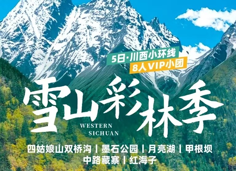 四姑娘山双桥沟+墨石公园+月亮湖+甲根坝+中路藏寨+鱼子西+红海子5日游