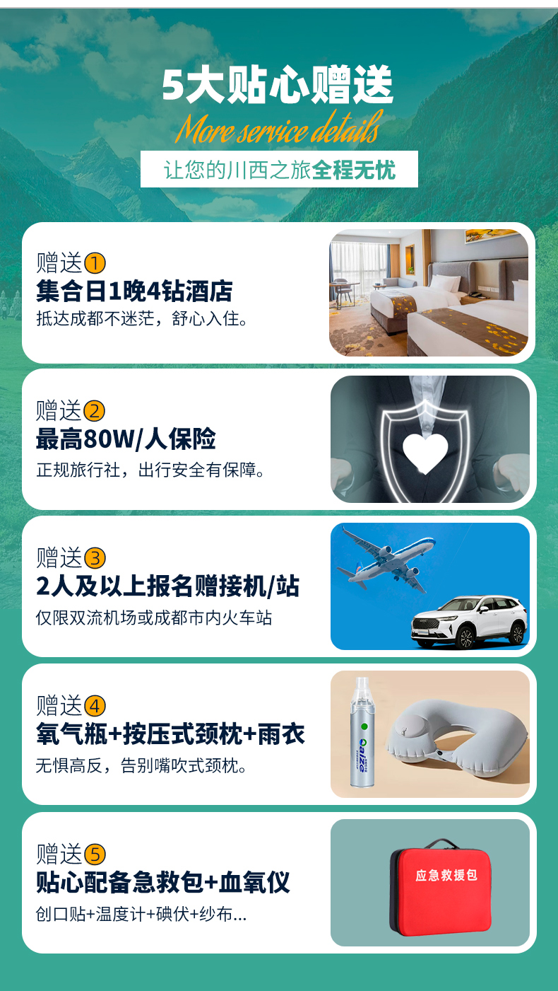 5、2人及以上报名赠双流机场接机/成都市内火车站接站(天府机场接机需自理费用);