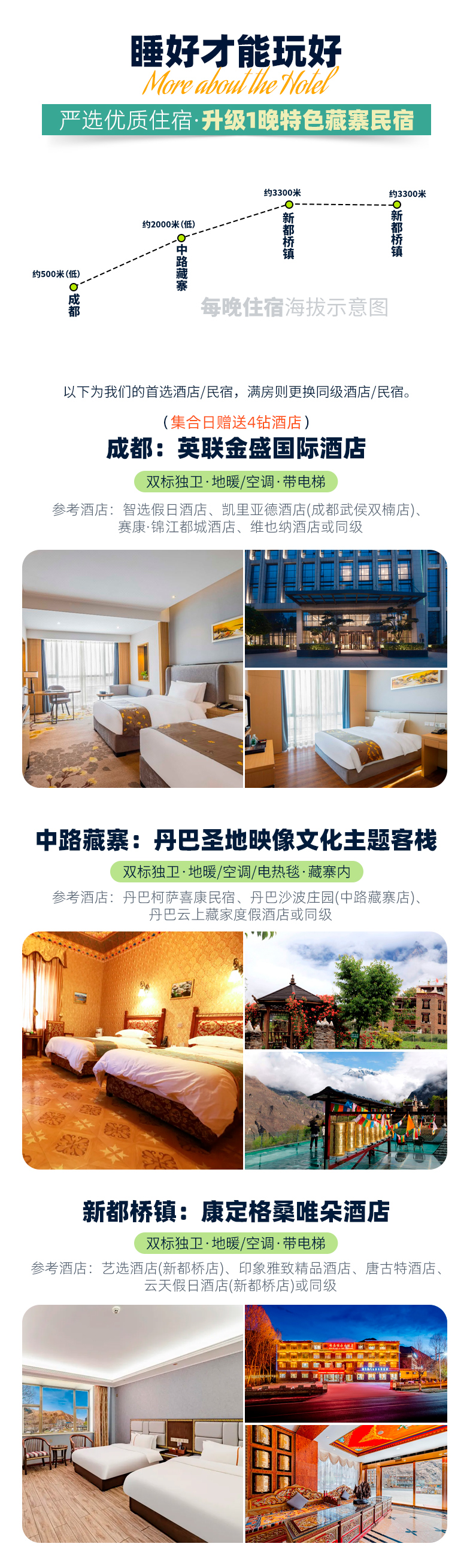 2、住宿:全程4晚标间住宿(含集合日赠送1晚4钻酒店、不住不退);