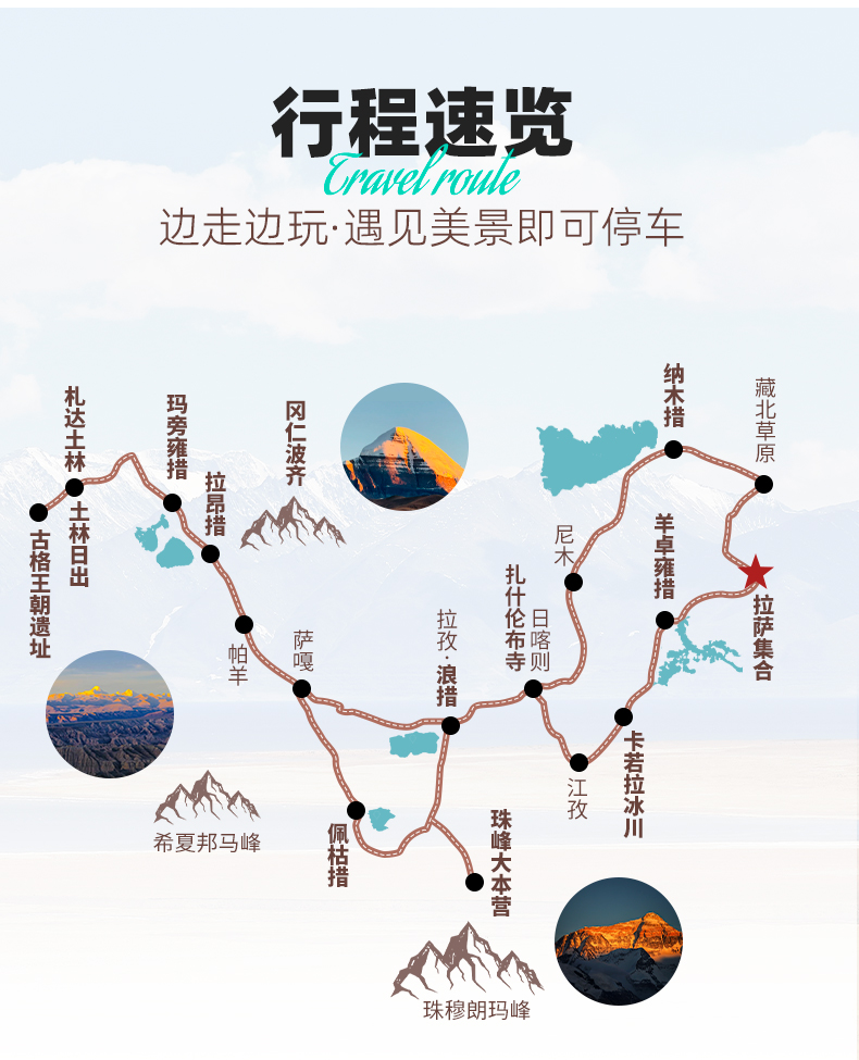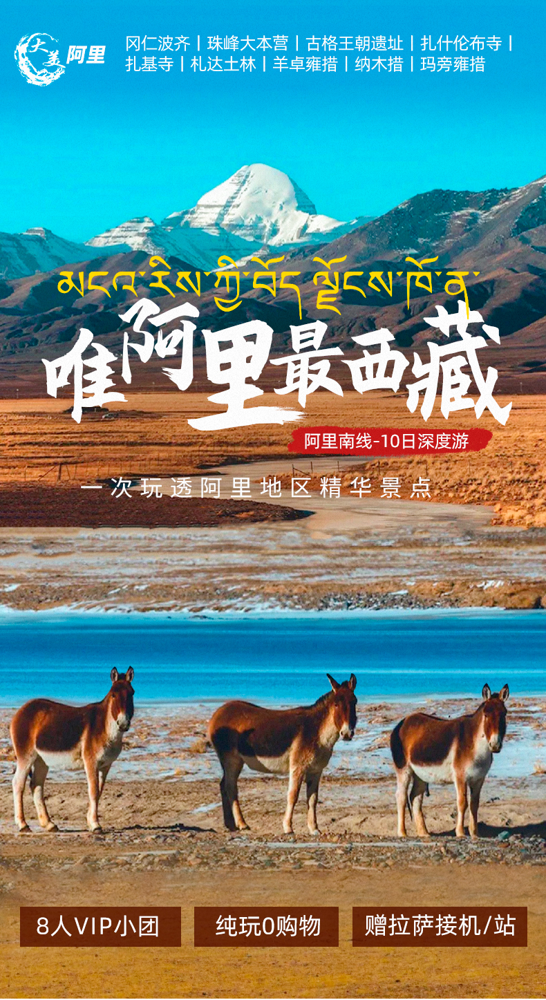阿里南线--冈仁波齐+古格王朝遗址+珠峰大本营+玛旁雍措+羊卓雍措+纳木措+扎基寺10日深度游