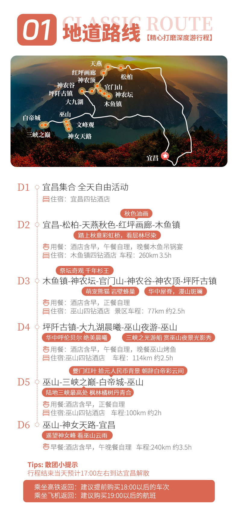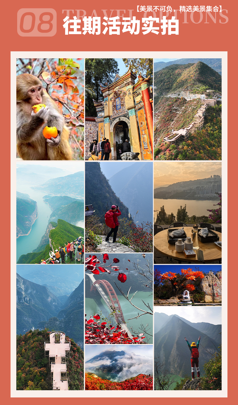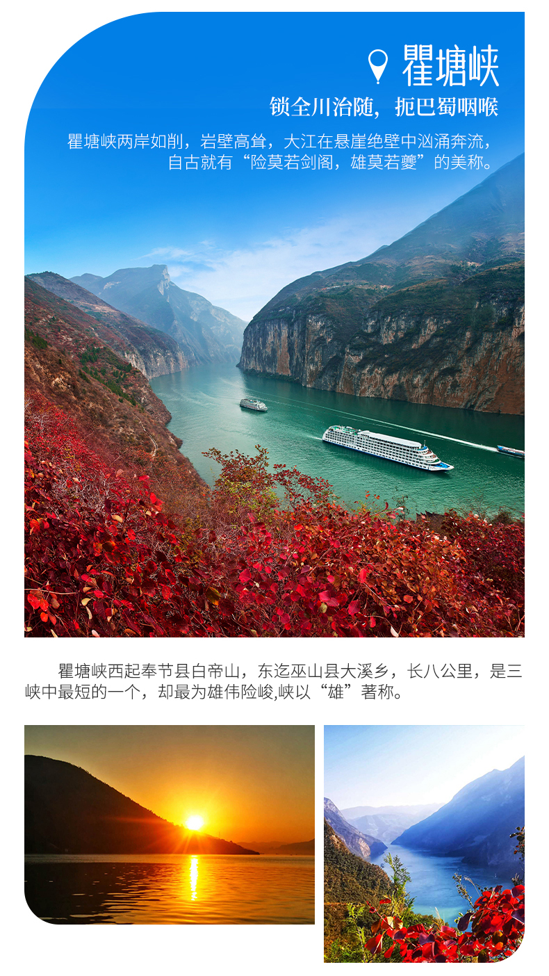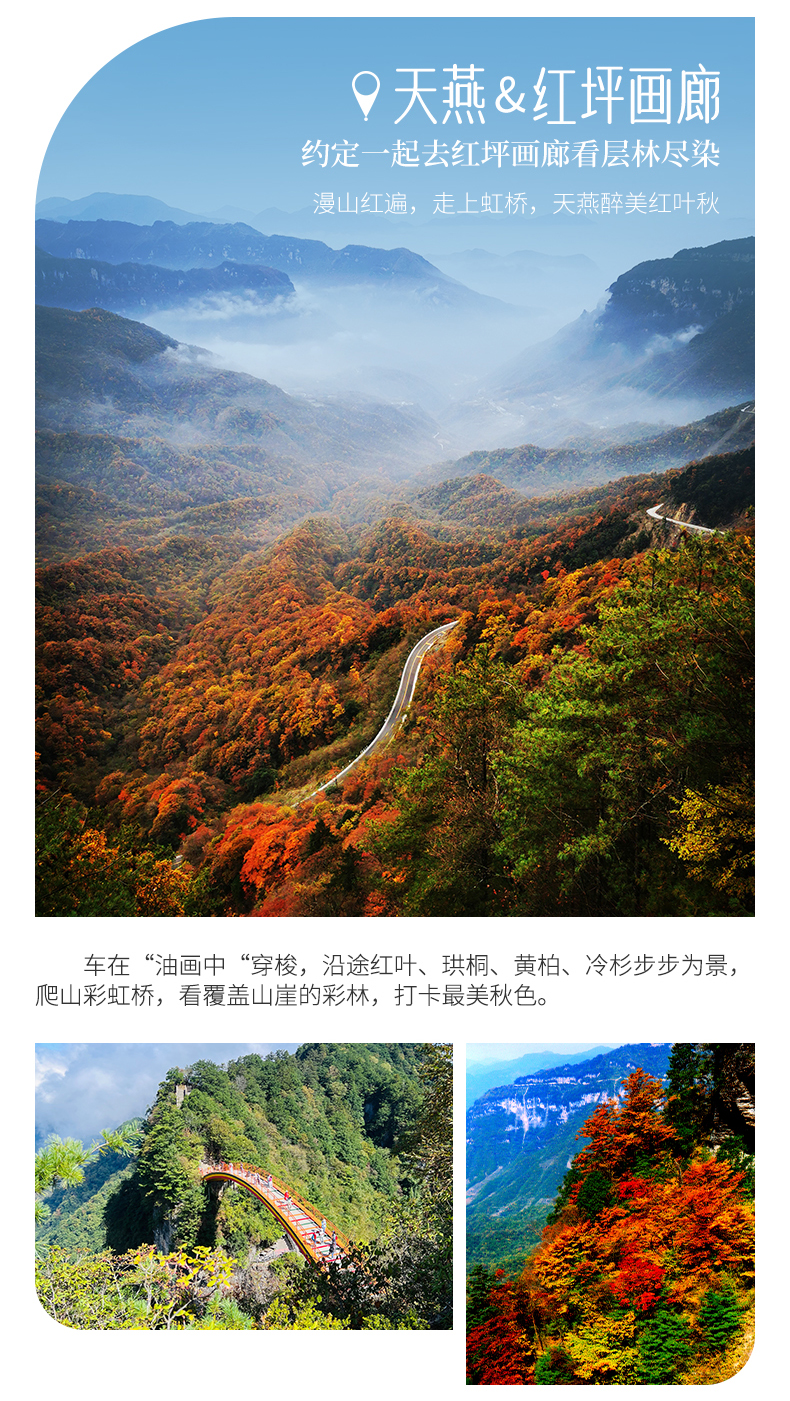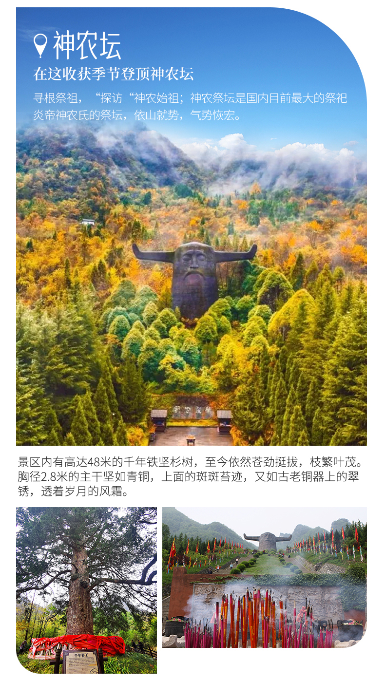 四、本线路属于秋季产品,按照往期预估,神农架秋景为10月上旬—11月初,10月中下旬是zui美时间段;三峡红叶季为10月末——12月初,11月中下旬是zui美时间段但是存在提前或延后的误差,游玩时请合理期待实际景色。