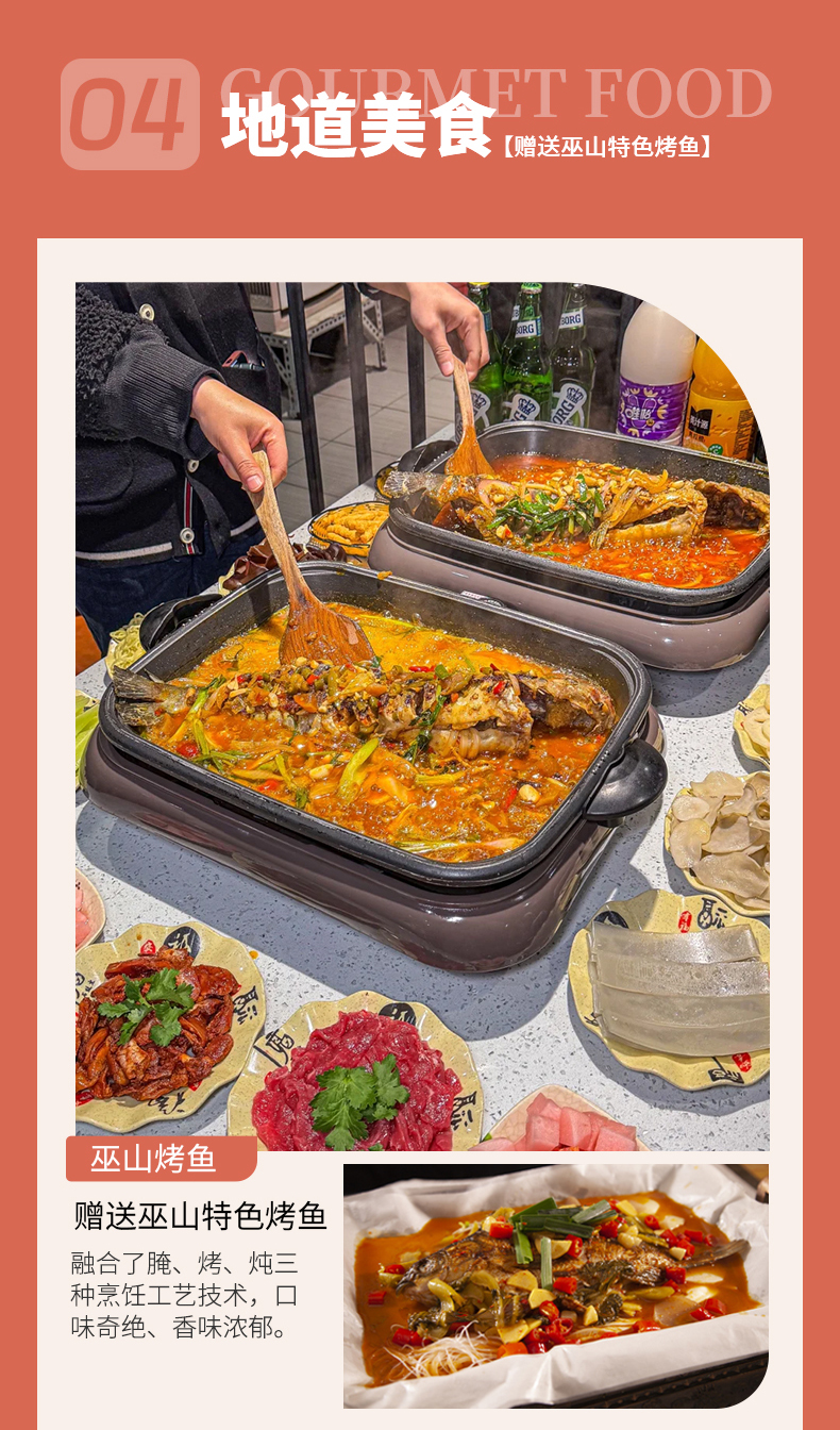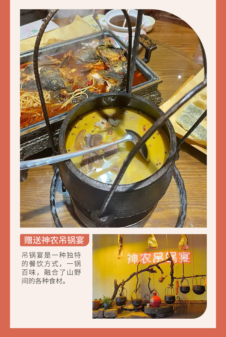 4.【餐饮】5个酒店含早+赠送神农吊锅宴+巫山烤鱼(赠送餐食,不吃不退)