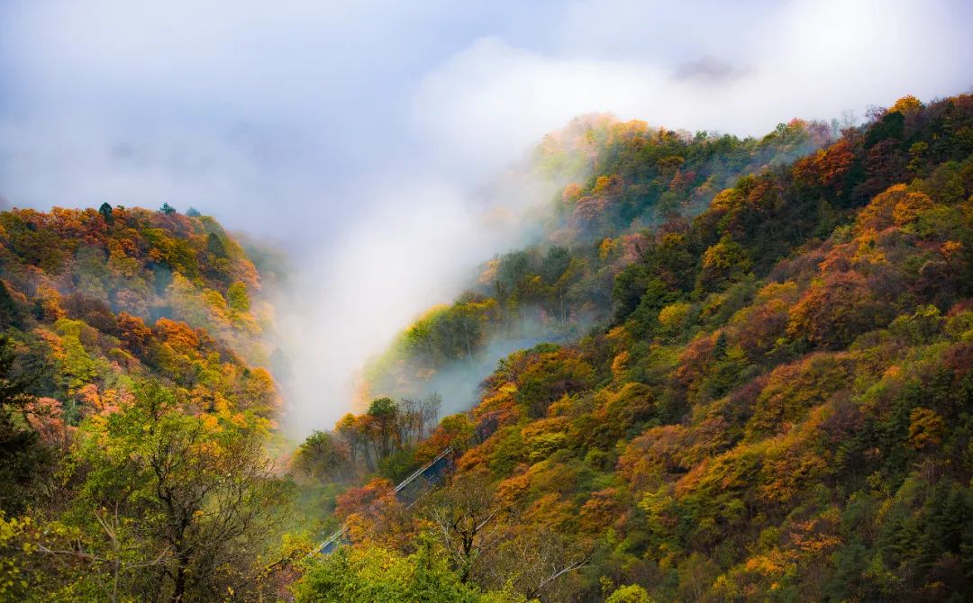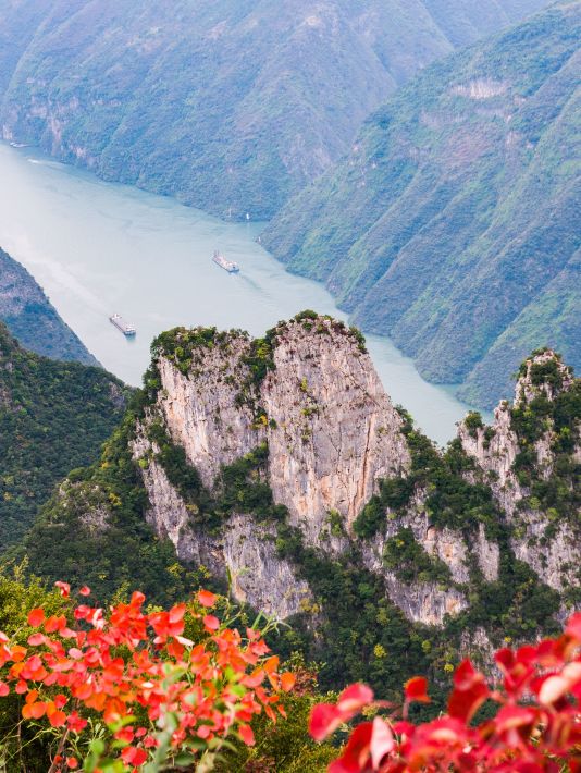 站在三峡之巅俯瞰长江壮美和那满山红叶,时间碰巧的话,在三峡之巅还有个人的音律表演。