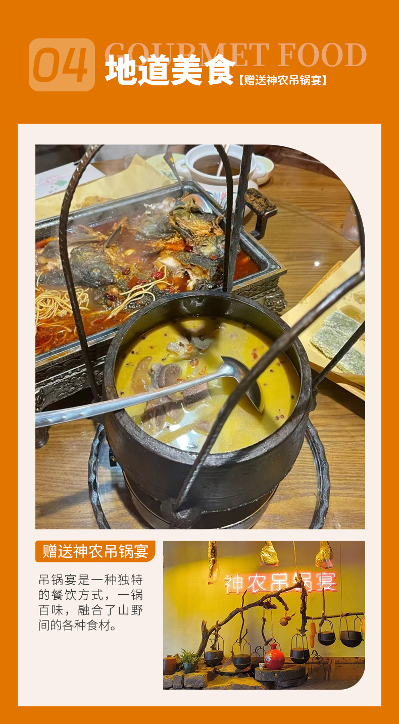 4.【餐饮】3个酒店含早+赠送特色神农吊锅宴(赠送餐食,不吃不退)