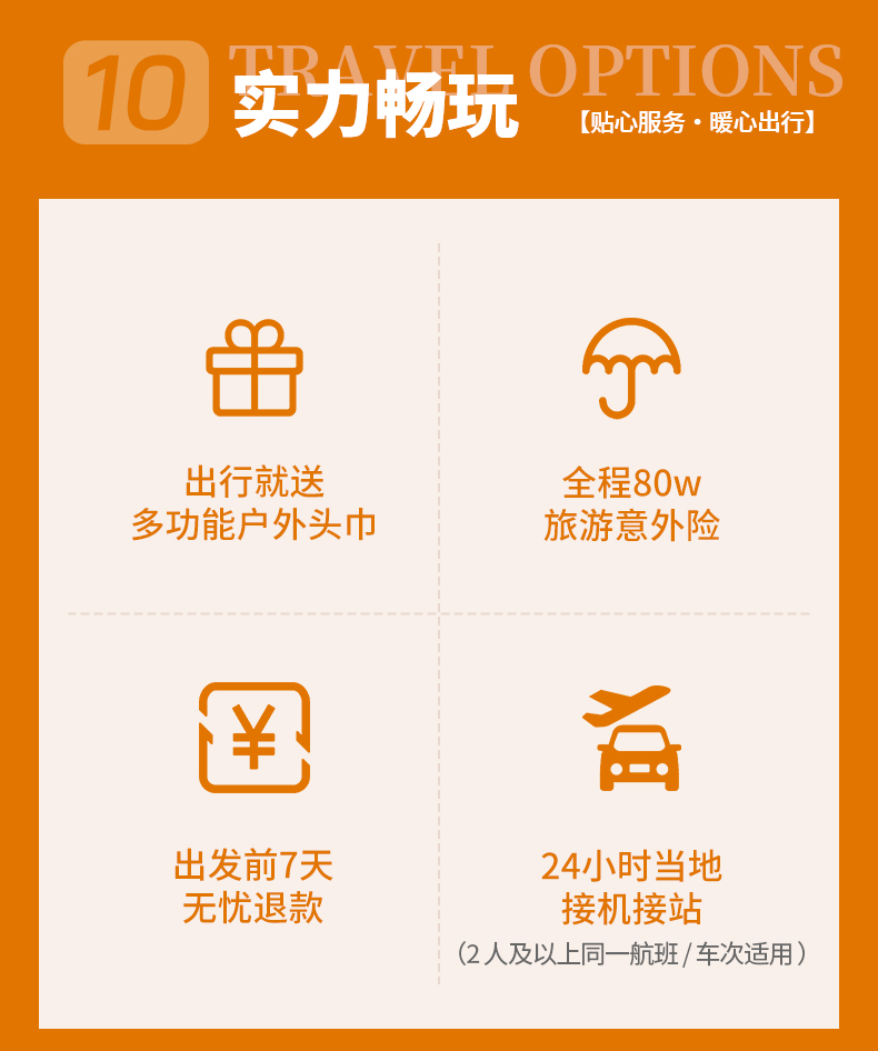 二、本行程接机接站,请提前2天告知客服航班号/车次,否则视为放弃此服务;