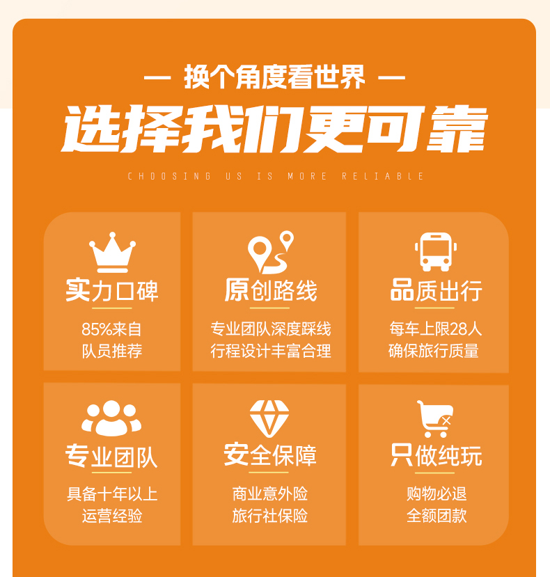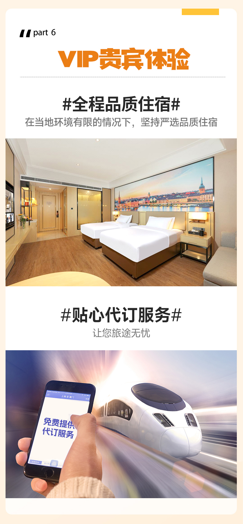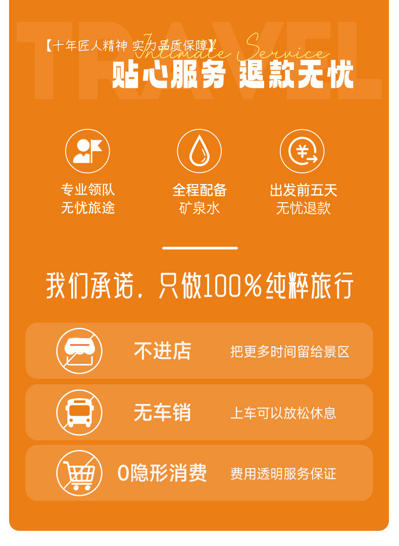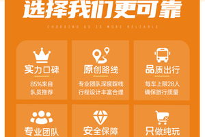 ● 本活动行程实际出行中,在征得客人同意的前提下,领队可能会根据天气、交通等情况,对行程进行适当调整(如调整景点游览顺序、变更集合时间等),以确保行程顺利进行。