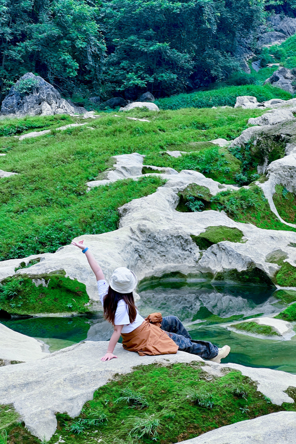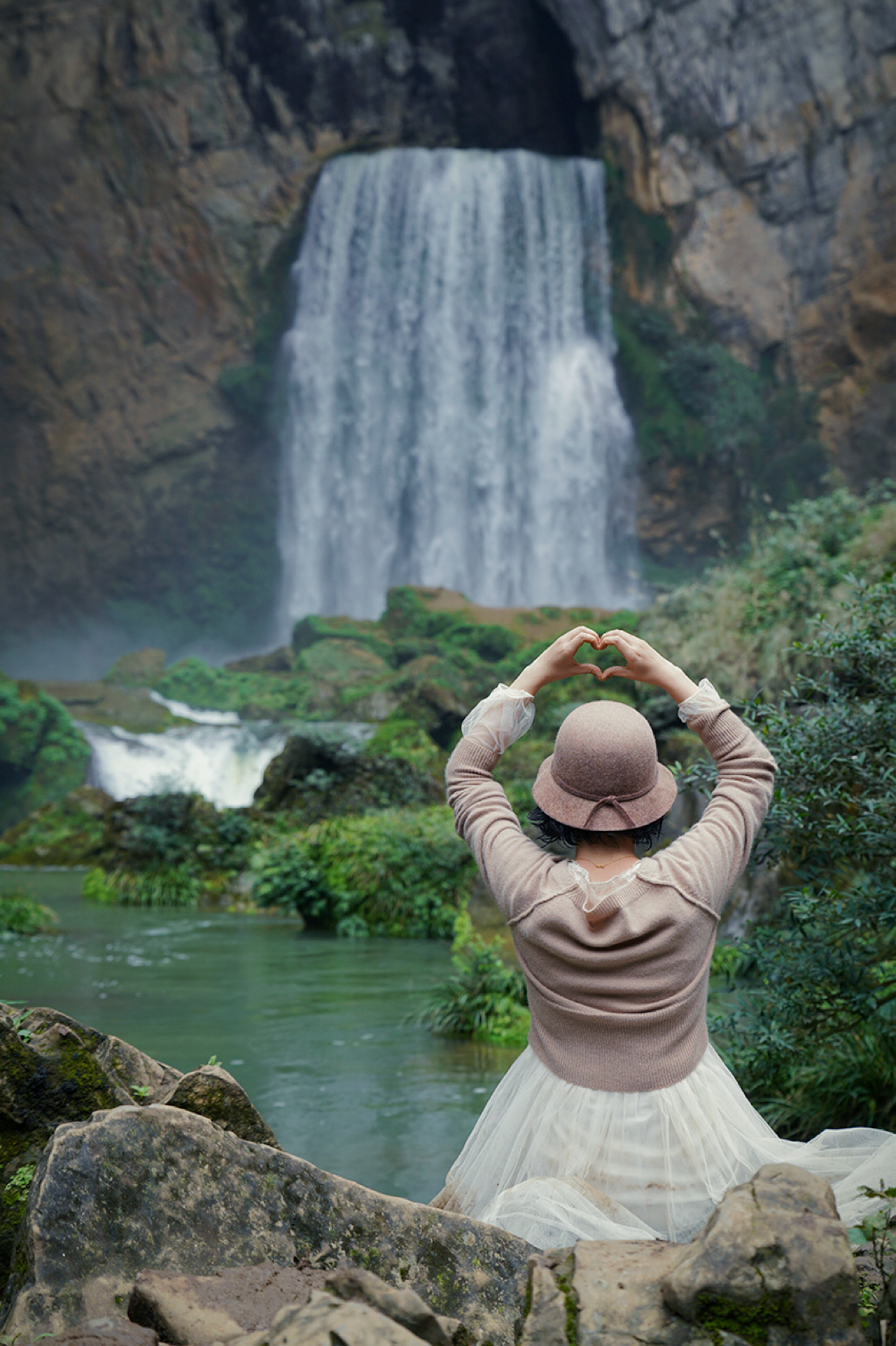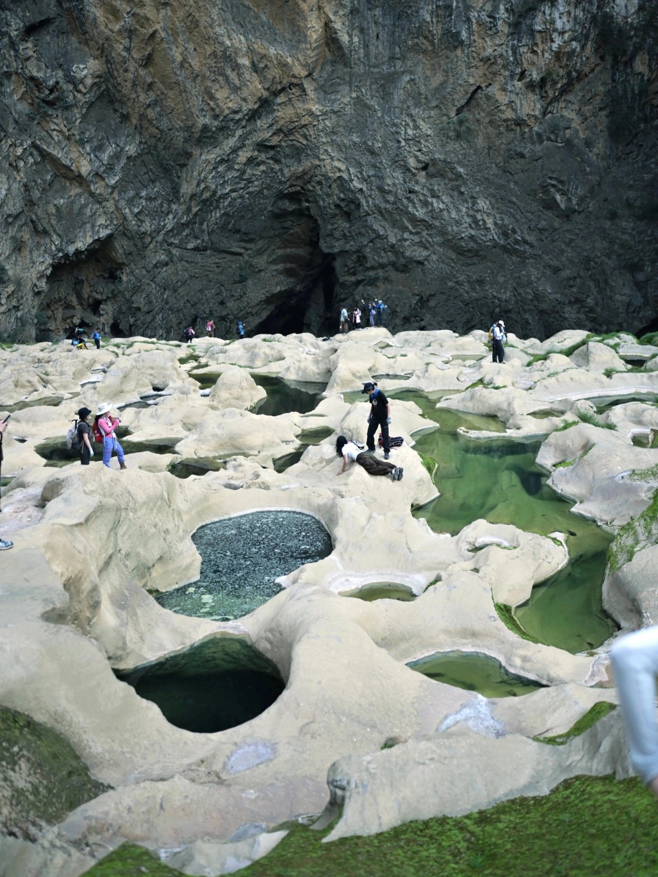 下午走出溶洞继续翻越天坑谷地、乱石坡、灌木林前往第二处地下河、看大圣之眼、探密牛倒岩洞中瀑布、凹造型拍美照、看穿洞,随后出山沿乡道返回起点,乘车前往安顺市区入住酒店,结束当天的徒步行程。