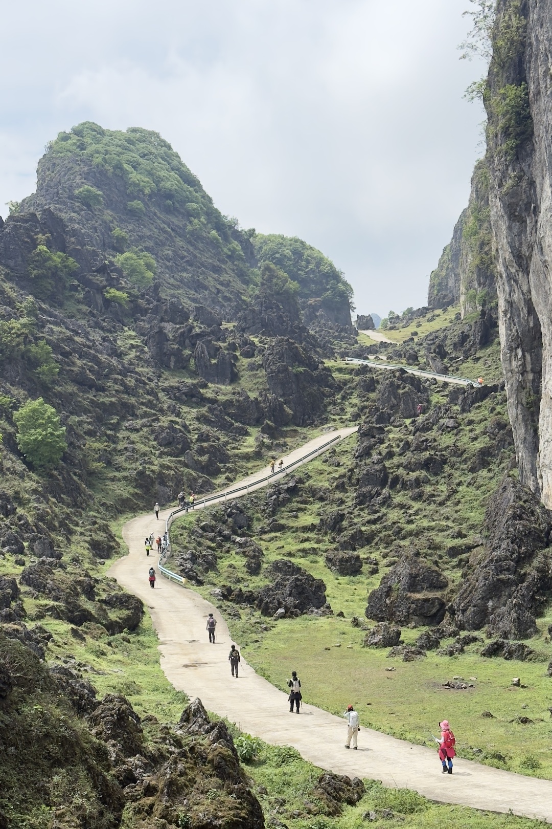 早餐后乘车前往夜郎天路,从山脚的乡道开始徒步,穿越村落、山脉、一路沿着羊肠小道爬升至海拔两千多米的龙脊山顶,沿途眺望牂牁江和老王山做伴。登顶后沿着“异域星球”般的山峰继续前行、拍美照凹造型。
