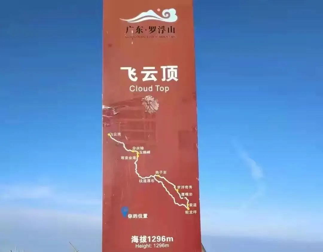 罗浮山主峰飞云顶海拔1296米峰顶盘圆平坦,花草并茂,云雾缭绕,日出可与泰山媲美