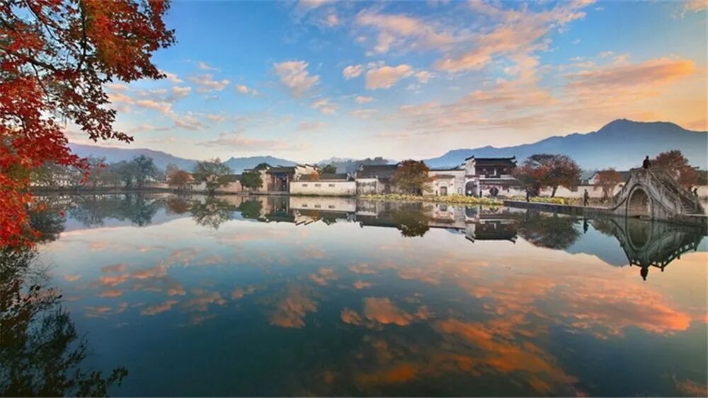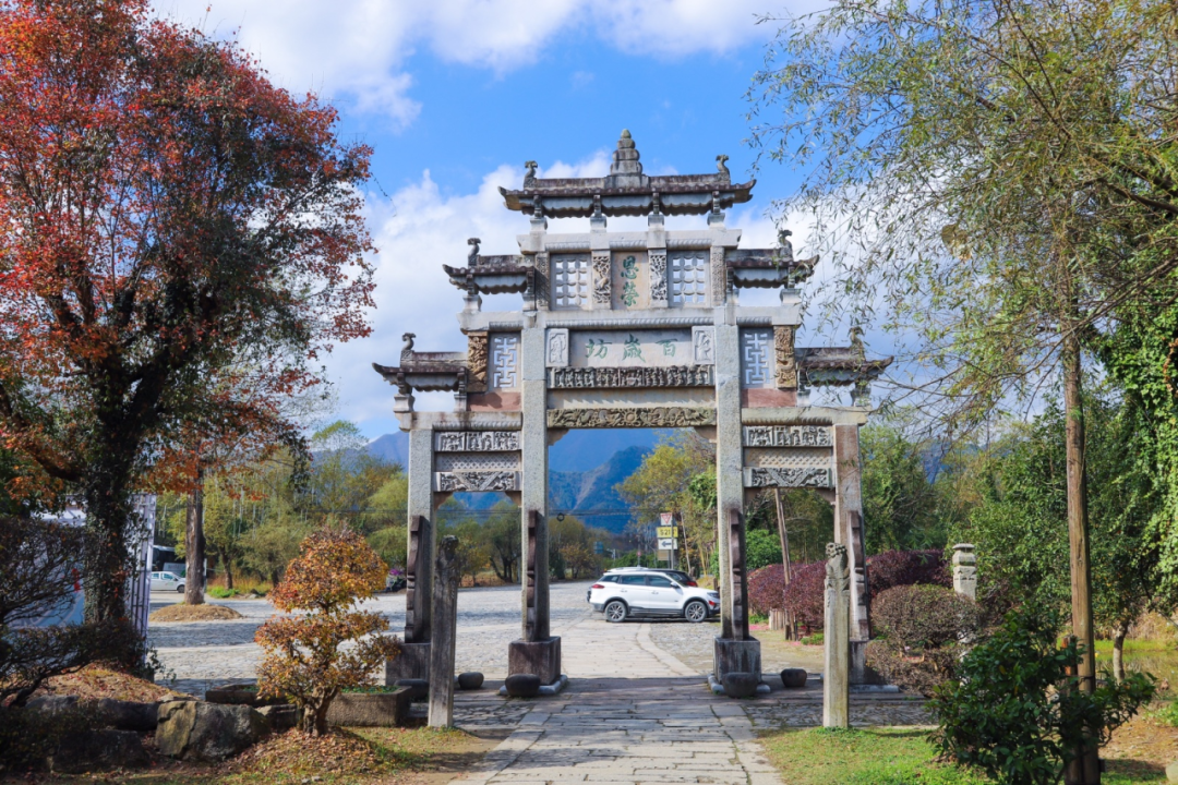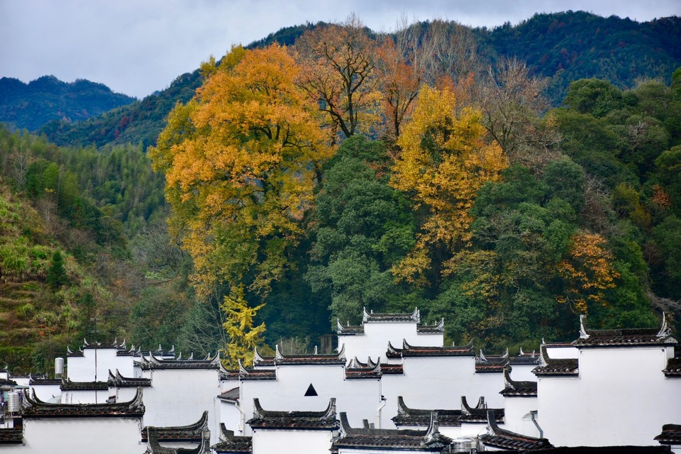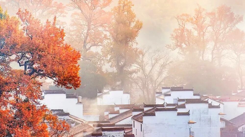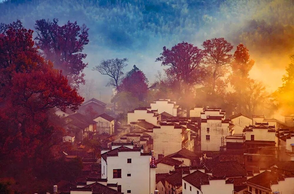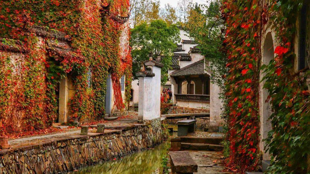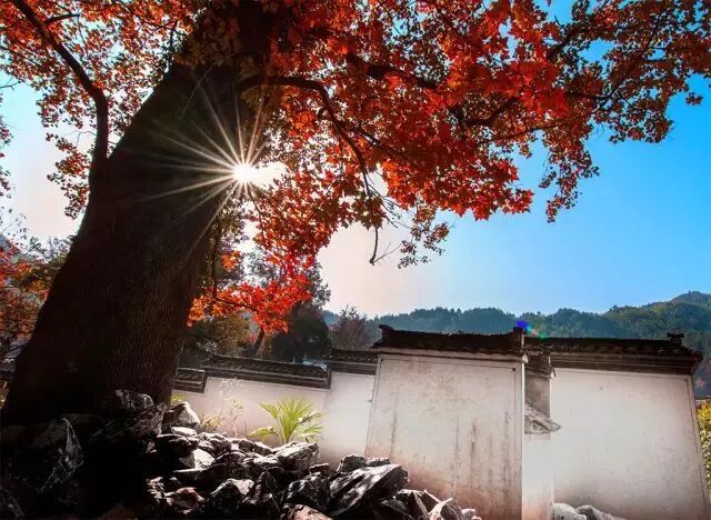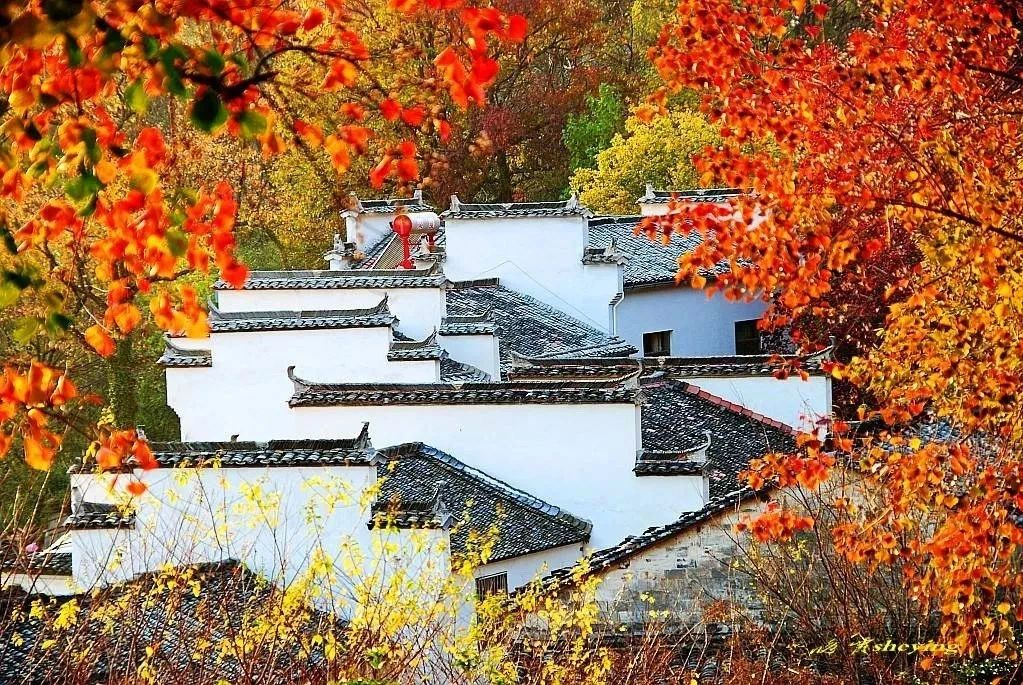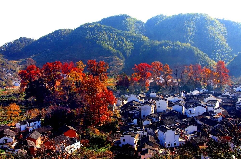 每到11月深秋,一片火红辉映着古老徽派村庄,为华东最著名的秋色之一。