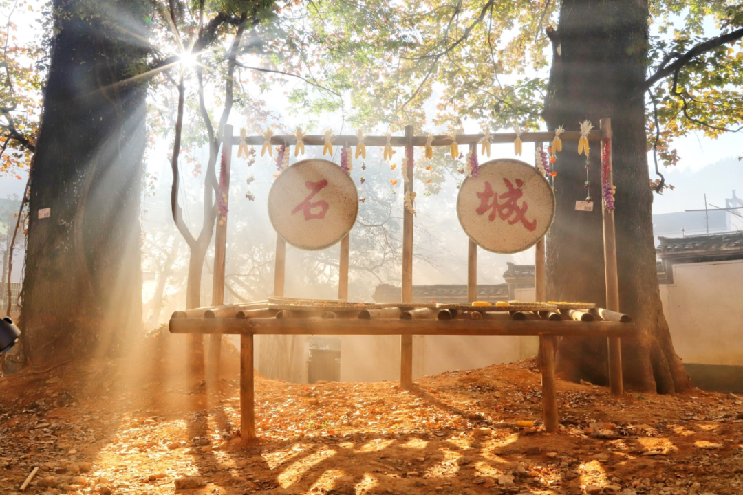 古枫成林,村舍聚集。清晨雾气或炊烟中的火红枫树美得惊人。石城的景色胜于晨景,5点至8点,石城晨雾和光影美轮美奂,变化多端,不知迷倒了多少人…