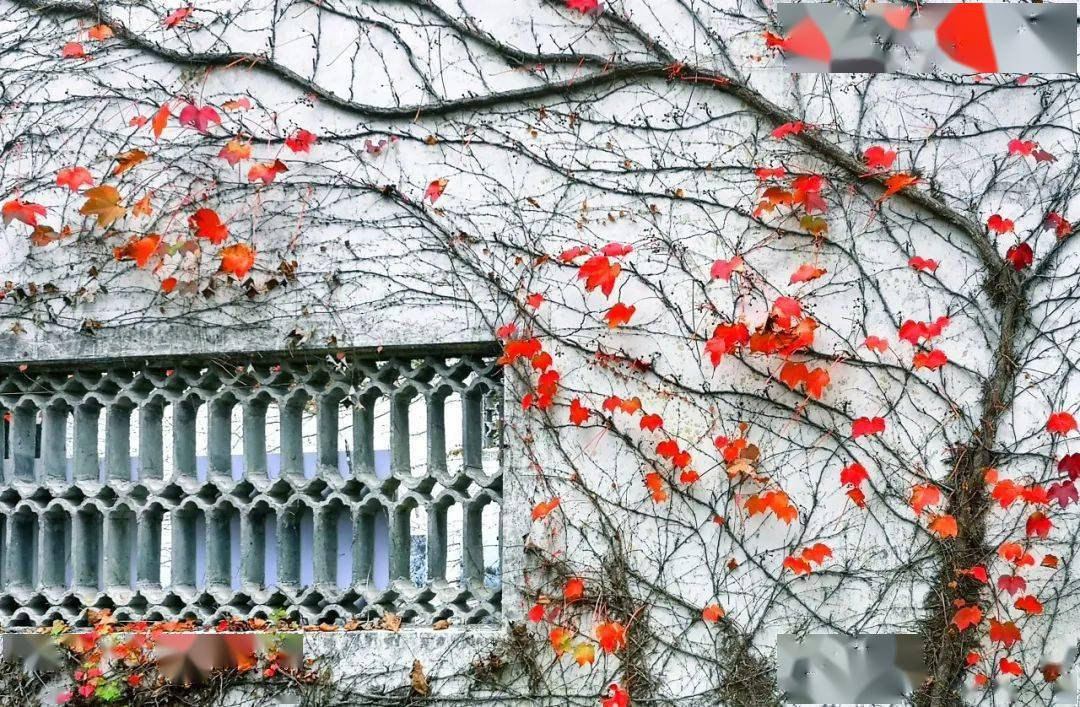 有时是整整的一面的粉墙爬满了红叶,明晃晃地在昭示着这里热烈的秋,古朴的墙。