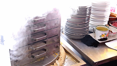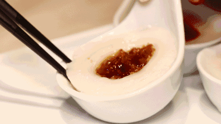 一个由米浆做成的粿皮,像个小碟子。中间放上蒜炒的香甜菜脯粒。小小个一个一口,粿皮没啥味,不过菜脯粒救了场!吃起来还是有点意思的。