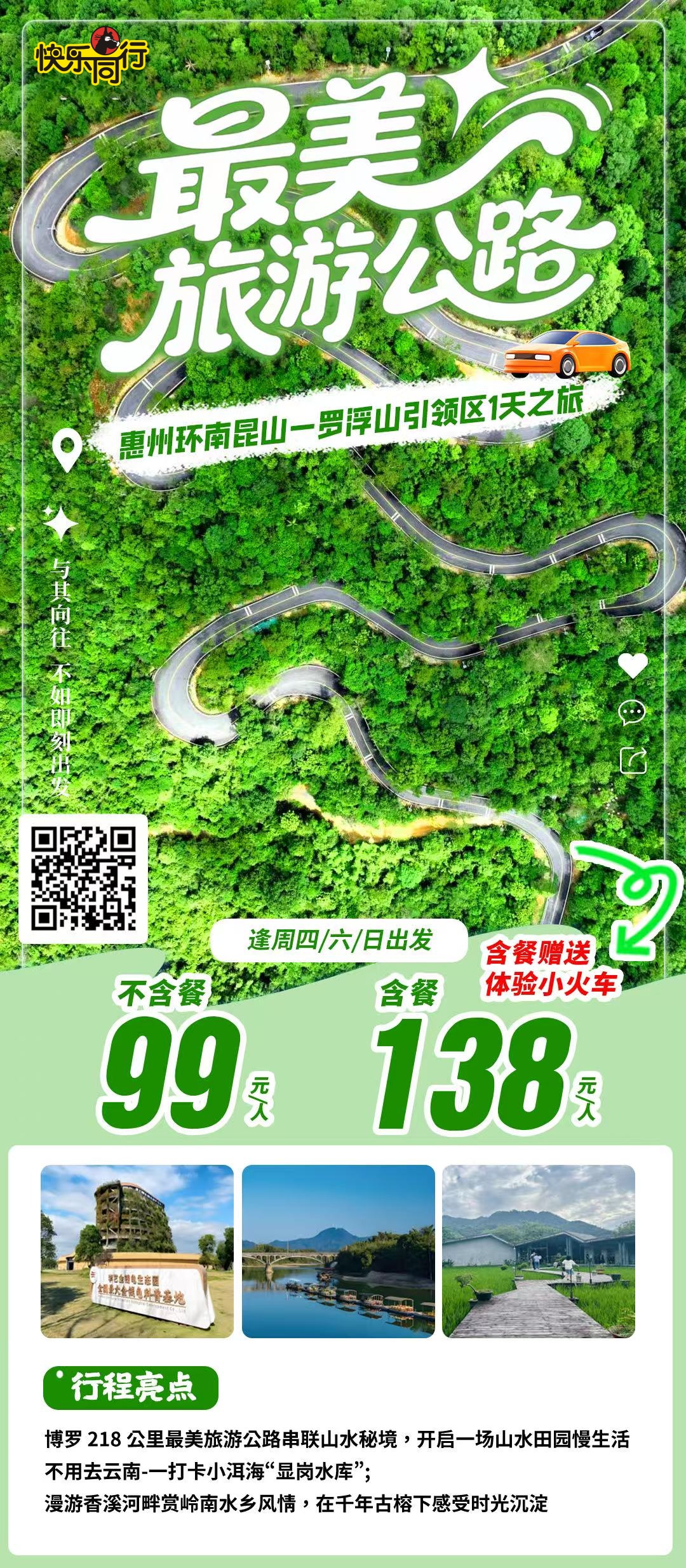 13:00 继续沿218罗浮山南昆山最美路线精华段游览:永汉、麻榨、横河、罗浮山—漫游香溪河畔—最美公路—麻榨大桥小凤凰景色—鳌溪千年大榕树—禾肚里民宿—显岗水库;