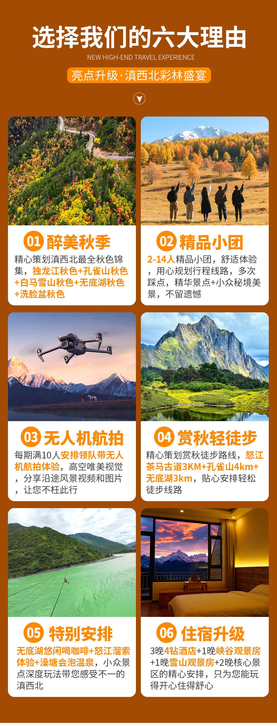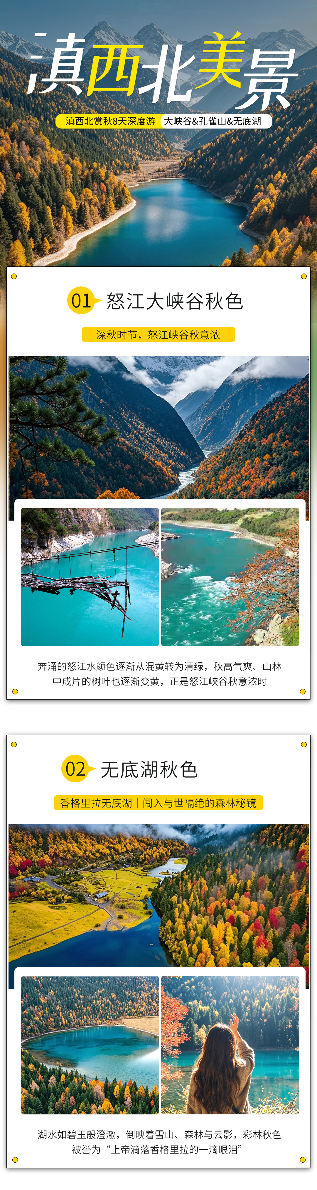 怒江大峡谷秋色-梅里雪山-孔雀山秋色-香格里拉-无底湖秋色-独龙江-丙中洛-滇藏界-独克宗-白水台(2-14人小团 | 无人机航拍 | 3晚四钻酒店+1晚峡谷观景房+1晚雪山观景房 | 悠闲咖啡 | 怒江溜索 )
