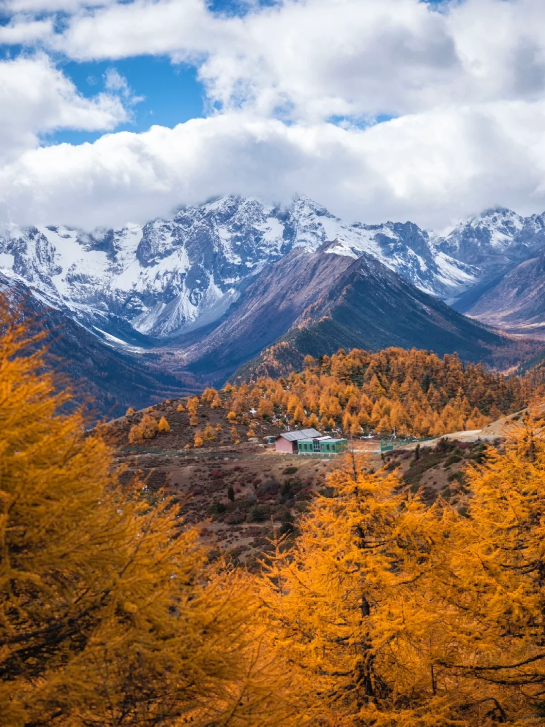 日照金山拍摄结束后前往【白马雪山观景台赏秋】白马雪山秋色最浓,雪山、彩林、蓝天交织,宛如油画,可俯瞰雪山与秋色同框,云雾缭绕时如仙境。