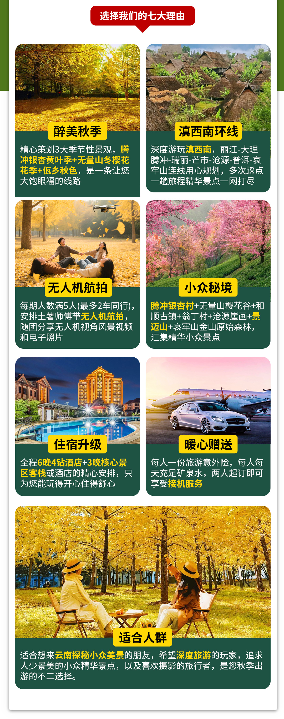(3)行程内所列为仅为参考酒店,如遇特殊情况或满房,则安排同标准住宿,不接受指定要求安排,具体以出发实际安排为准。