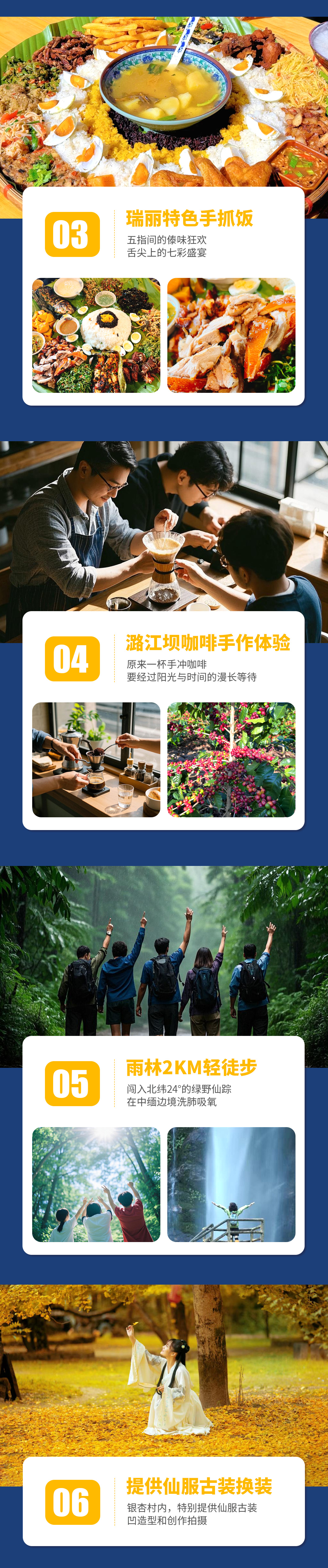 4、用餐:酒店含早餐,2个特色餐(瑞丽手抓饭+南涧跳菜),其余正餐敬请自理。