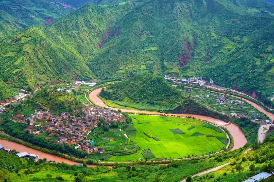 随后到制高点【云龙太极图】,这里因沘江在此绕出一个“S”型的大湾子,形成了类似道家“太极图”的自然地貌奇观。在这太极图东面又有诺邓河流入,形成了“太极锁水”图。