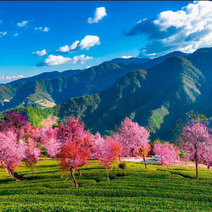今天要早起,欣赏拍摄【无量山樱花谷】走进樱花遍野的无量山茶园,缨花衬着绿茶,星星点点连成片,在阳光的照耀下更加迷眼。樱花散布在低矮的茶丛中,绿的墨绿,红的淡粉,一高一低,层次分明。