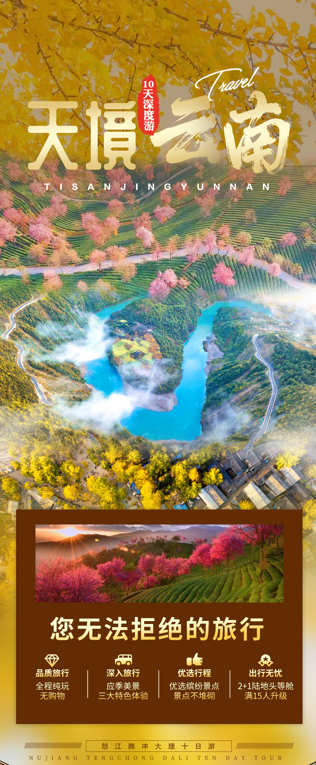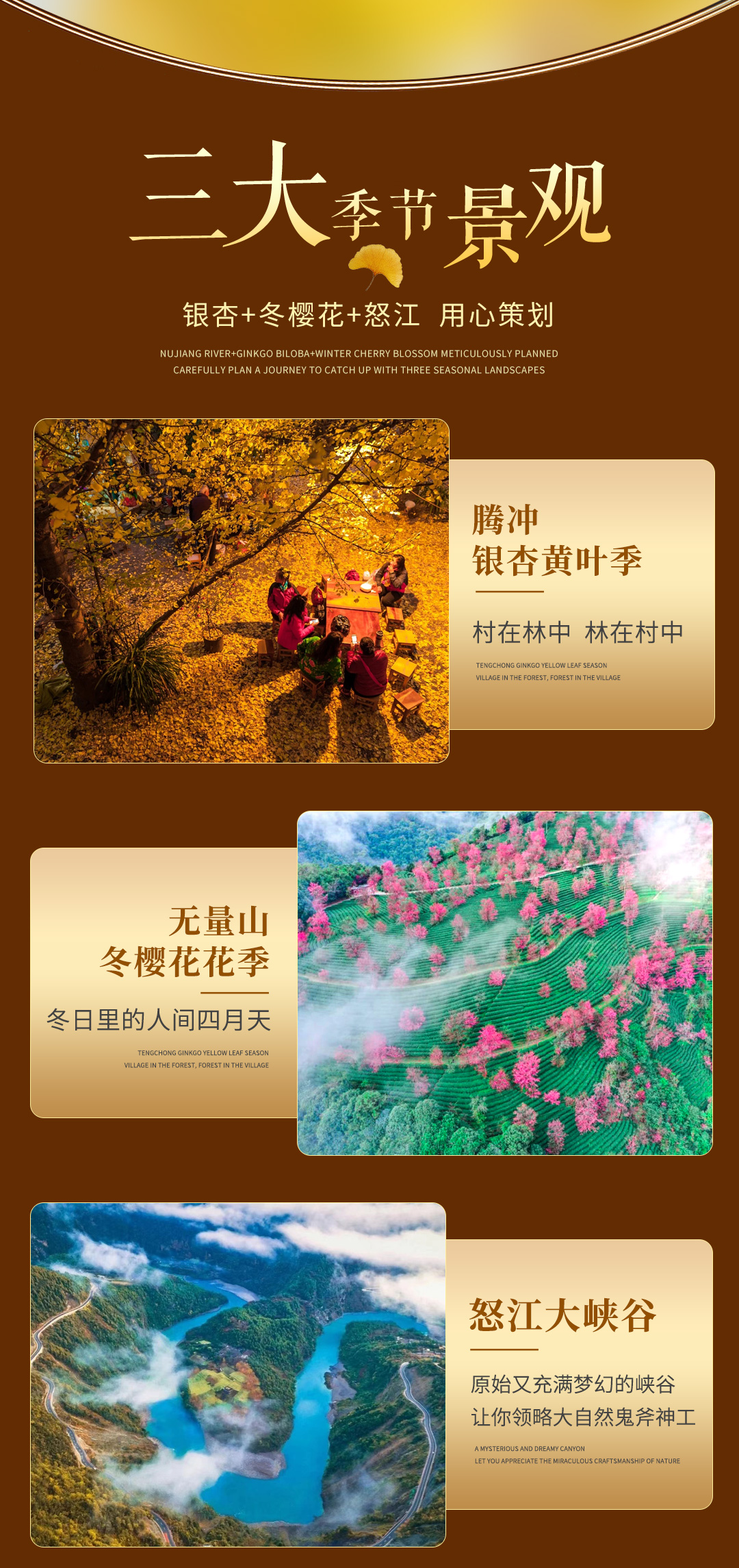 【怒江+银杏+冬樱花】用心策划一趟旅程,赶上3大季节性景观,腾冲银杏黄叶季+无量山冬樱花花季+怒江大峡谷秋色,是一条让您大饱眼福的线路。