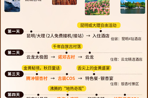 3、全程不含中餐和晚餐(3个特色餐“银杏宴+怒江“手抓饭”+南涧跳菜”除外),建议AA或自行品尝当地小吃;