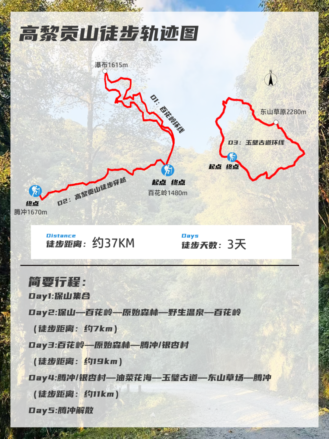 徒步距离 | 约37km,分3天完成