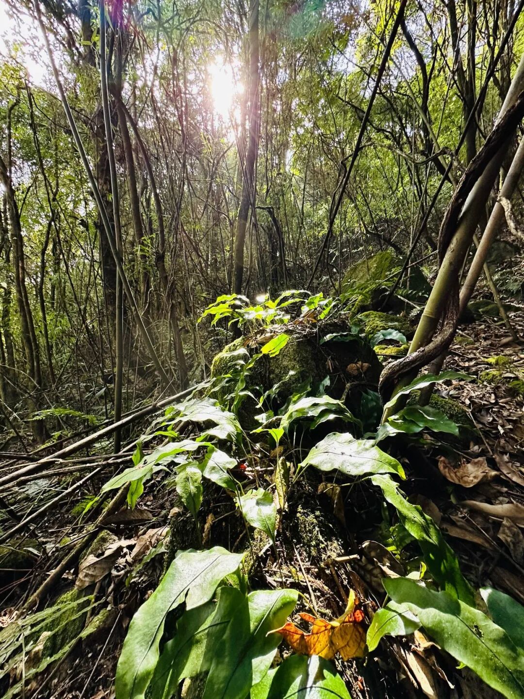 山林中偶尔传来白眉长臂猿的啼鸣,林莽间跃动着斑斓的生物图谱,宛如异域星球。