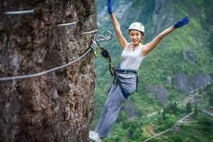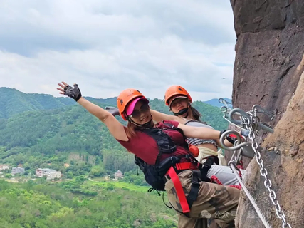 飞拉达的体验要求则相对较低,男女老少皆可,攀登过程中随时可以自行休息,缓解手脚肌肉疲劳。