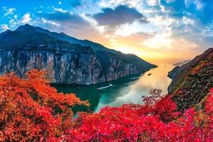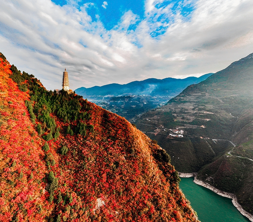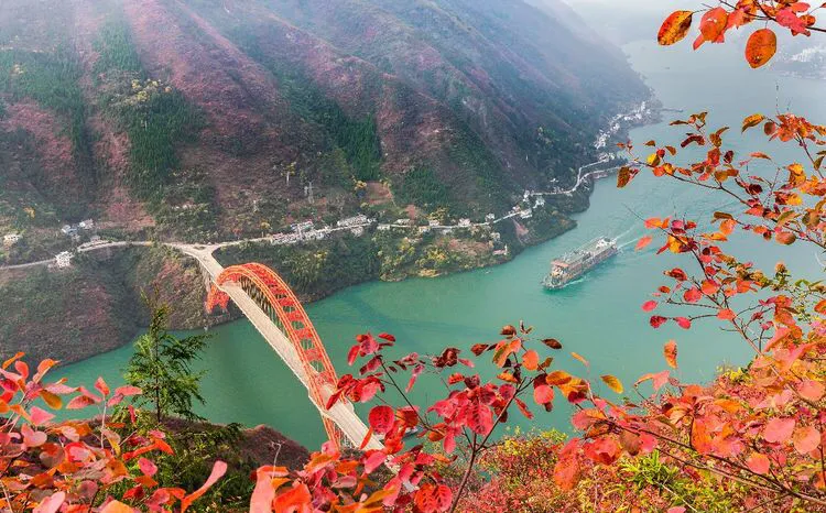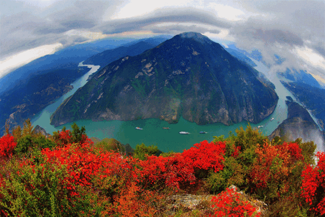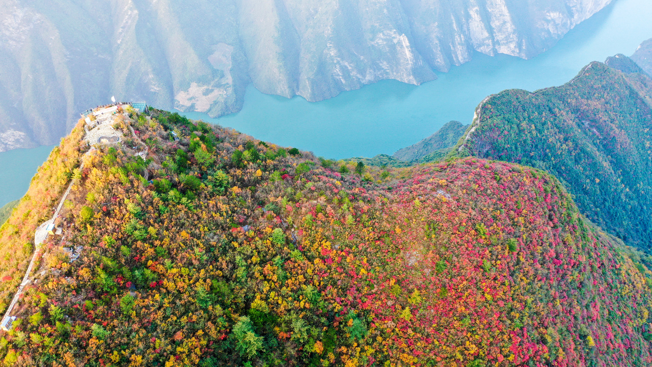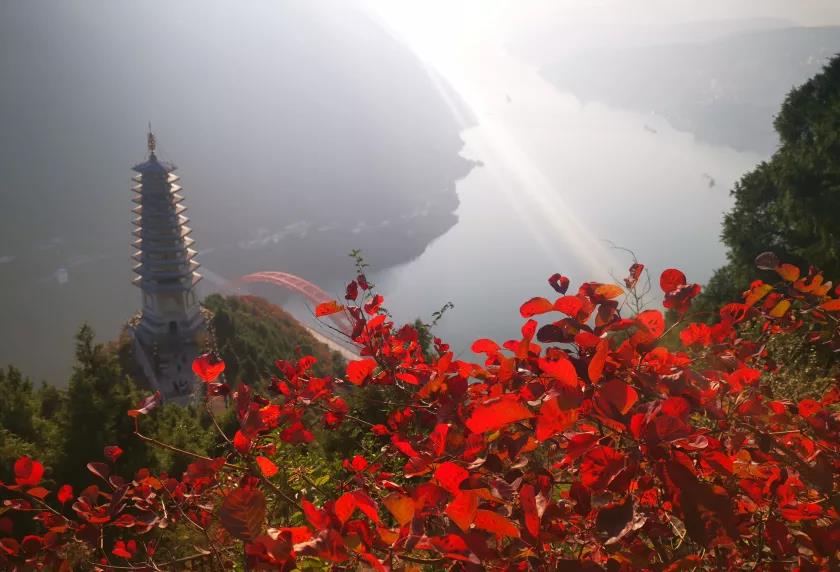 每到初冬时节,巫峡口的文峰观山上,红叶遍山峦,站在文峰观山顶,透过似火的红叶,俯瞰巫峡口彩虹卧波,远眺巫山县城依山层叠,让人顿生江山豪情。