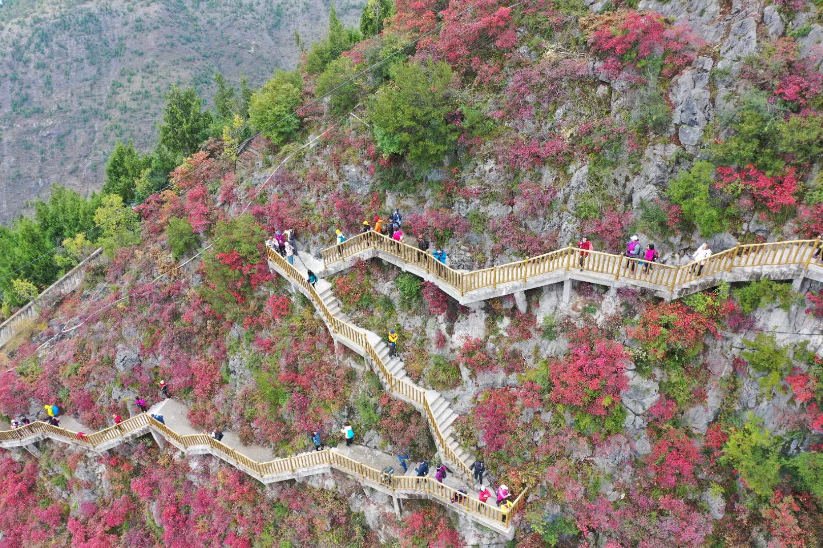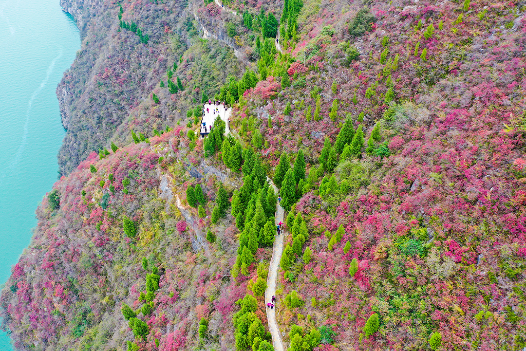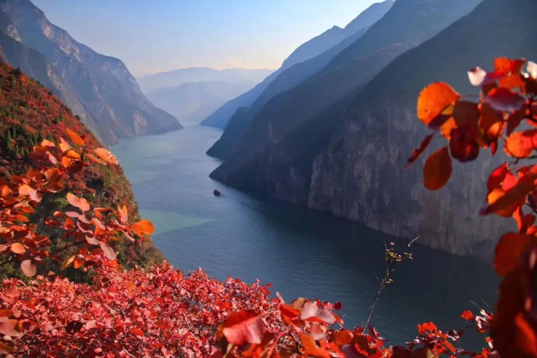从景区入口穿越古栈道登顶鹰嘴岩一路红叶相伴,美不胜收俯视巫峡奇景,炫彩壮阔被驴友评为“长江上最美的三峡画廊”。