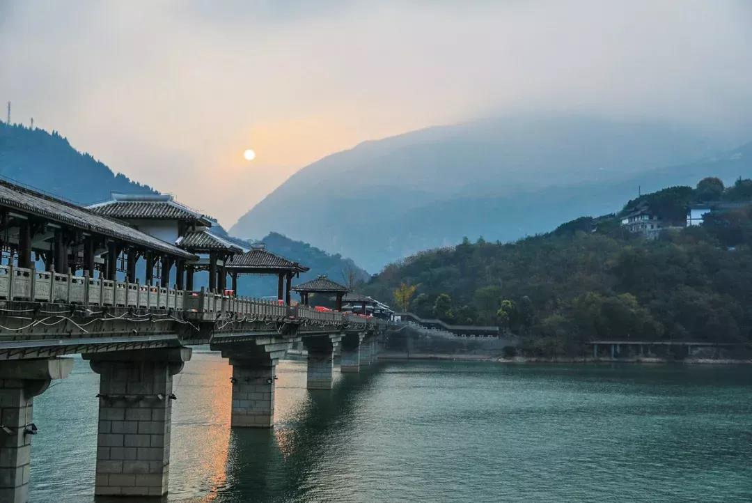 早餐后乘车前往巫山【文峰观】景区行车约1.5H)文峰,好听的一个名字,是否与文人典故有关呢?巫山文峰观被一片云雾笼罩着,隐隐约约中只见山峰突兀莽苍,文峰观就屹立于巫峡西口,为巴渝之锁钥,因为山形“尖耸如文笔”,因此得名。山下江流被两岸夹延而起,宛如一道天水而来。