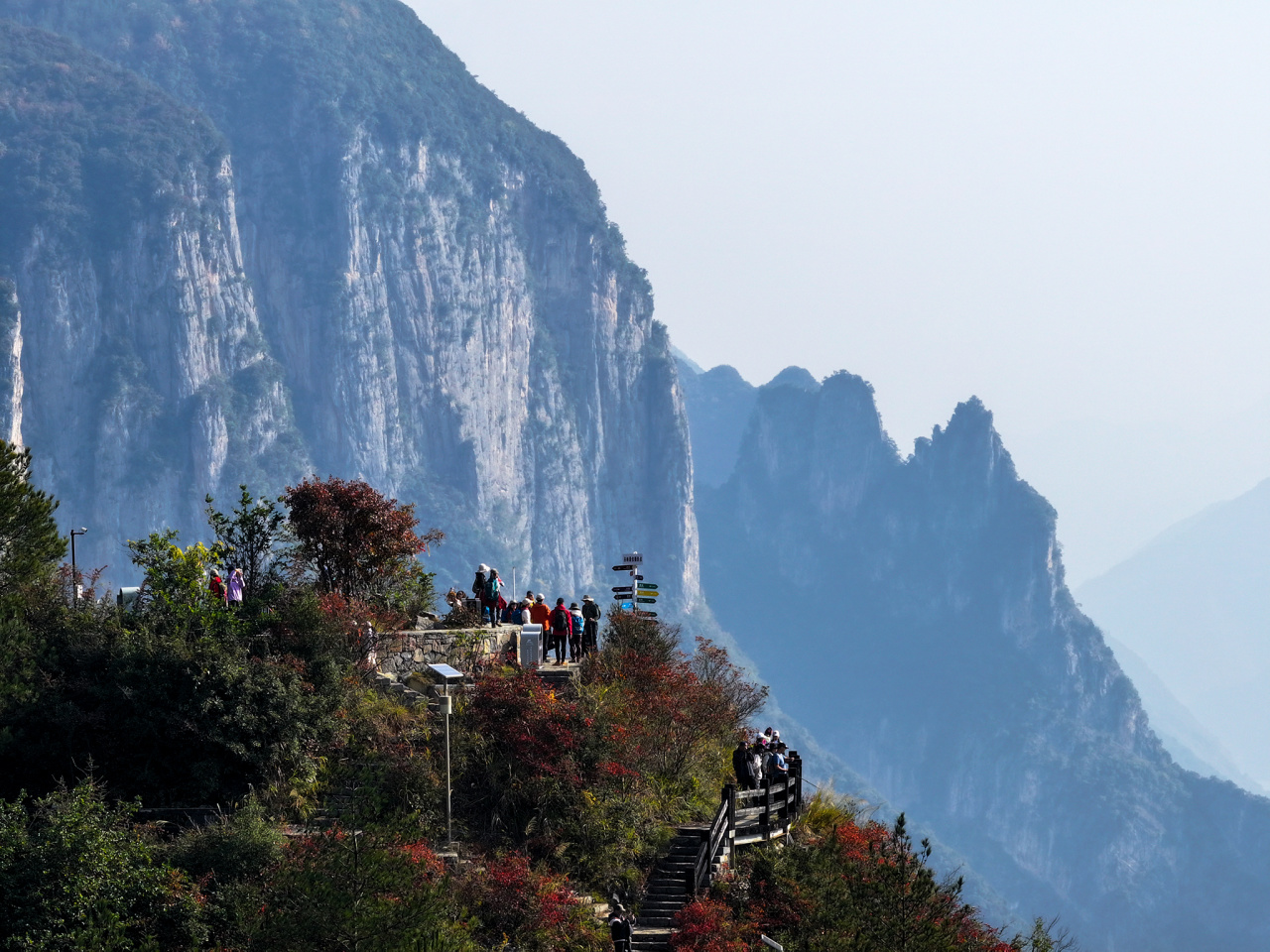 早餐后乘车前往【三峡之巅风景区】,位于夔门北岸赤甲山峰,海拔1388米,是长江三峡的至高点。景区全长十公里,景点有天音神道、丹青崖、青云梯、彩云台等十七处景观。在景区观景平台,可俯瞰夔门、瞿塘峡,远眺白帝城。每年11月中旬到12月底,红叶如约而临,漫山红叶层林尽染,沿着小道前行,清新的空气,秀美的山水,让人心旷神怡。