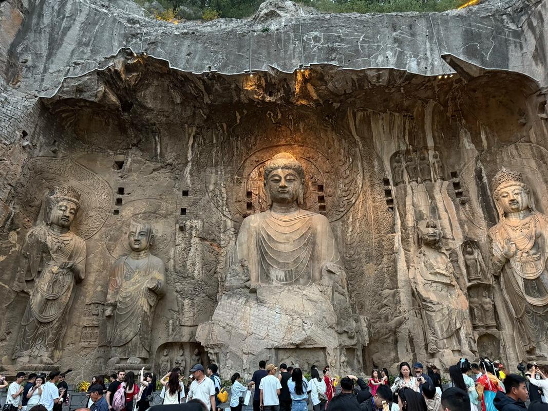 酒店早餐后赴洛阳,游览国家重点文物保护单位、“世界文化遗产、中国三大石窟艺术宝库 之一的【龙门石窟】。龙门石窟现存佛像十万余尊、窟龛二千 三百多个,可谓是中国石窟艺术的宝藏,是北魏至唐代皇家贵族发愿造像最集中的地方,北魏时期洞窟以 古阳洞、宾阳中洞和莲花洞、石窟寺最具代表价值,典型地反映了北魏王朝举国崇佛的历史情态,也是中 国传统文化与域外文明交汇融合的珍贵记录;唐代洞窟中,以规模宏伟、气势磅礴的奉先寺大卢舍那像龛 群雕最为著名,代表着唐代雕刻艺术的巅峰成就,是我国石刻艺术的典范之作,被誉为“东方维纳斯”,后游览中国历史上最典型、最优秀的城门——【丽景门】。丽景门始建于隋代,据《唐两京城坊考》记载,东都皇城西面有两门,南丽景门,北宣辉门。是洛阳古城的西大门。由城门楼、瓮城、箭楼、城墙和丽景桥(古时为吊桥),护城河等部分组成,其城垣高厚,月城宏阔,重门叠关,上干浮云,气势磅礴,成为洛阳老城历史文化古城街区的龙头。其规模之宏大在河南古建筑中居于首位,成为洛阳古城历史文化最具特色的标志,是为中原第一楼,古都第一门。。有诗人用:“洛阳牡丹甲天下,丽景城楼世无双”,“不到丽景门,枉来洛阳城,来赞美它无限的魅力。后游览被誉为"中原渡口"的【洛邑古城文化旅游景区】,洛邑古城位于河南省洛阳市老城区。项目一期分布在洛邑古城东南角。该项目东至新街,西至金业路,南至南护城河,北至中州东路,总规划面积系1360亩,总投资逾人民币127亿元。开发周期约10年,项目分为四期,首期规划建设面积280亩。景区包含文峰塔、河南府文庙、妥灵宫、四眼井、金元古城墙遗址等多个历史时期保护建筑,是集游、玩、吃、住、购于一体的综合性人文旅游观光区,后入住酒店。