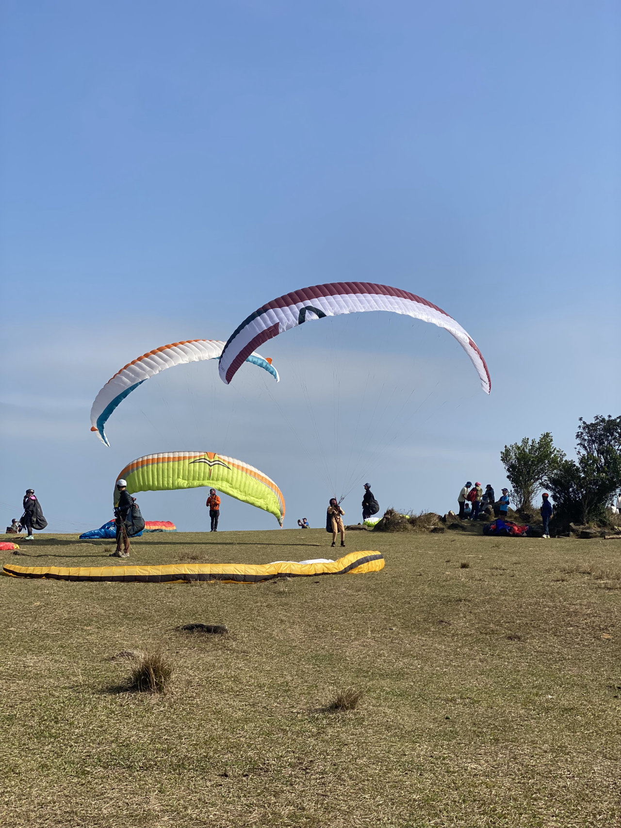 山顶有处平原,就是昂平,是个高山营地。每逢假日,许多滑翔伞爱好者在此翱翔天际。