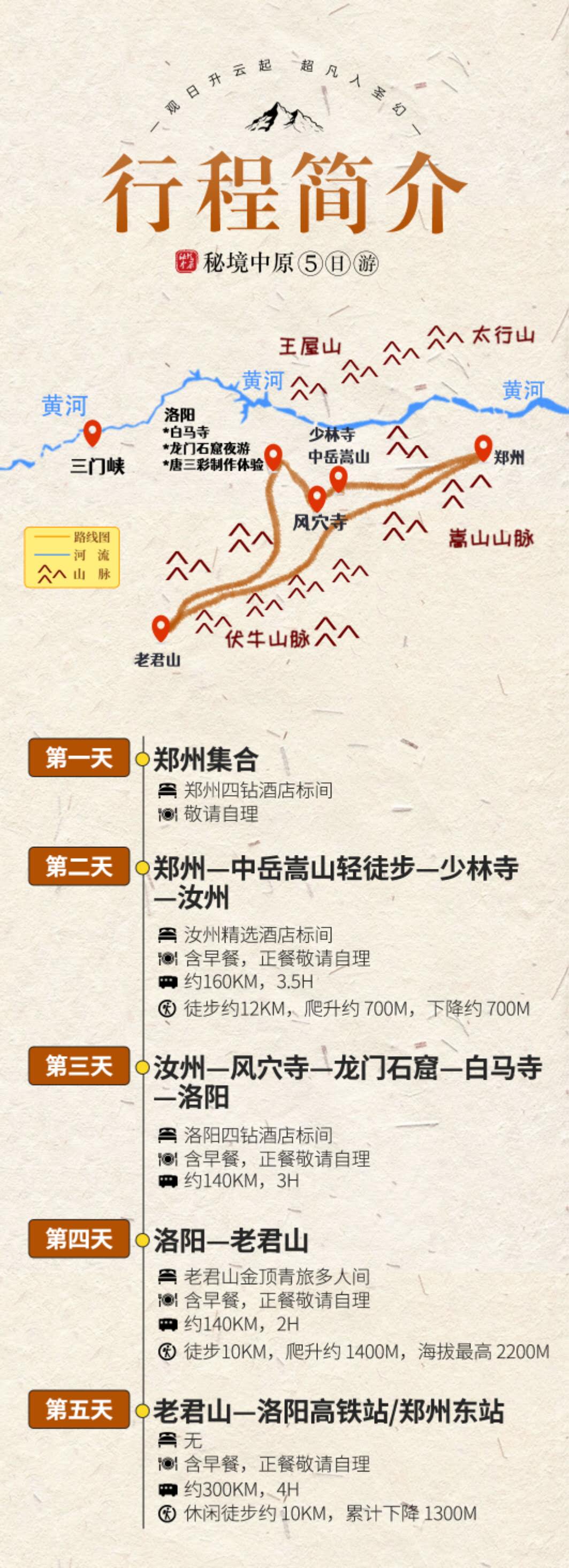 3、不含少林寺,老君山门票,徒步路线不经过景区门口,无法购买门票,如果遇到查票,现场 AA;