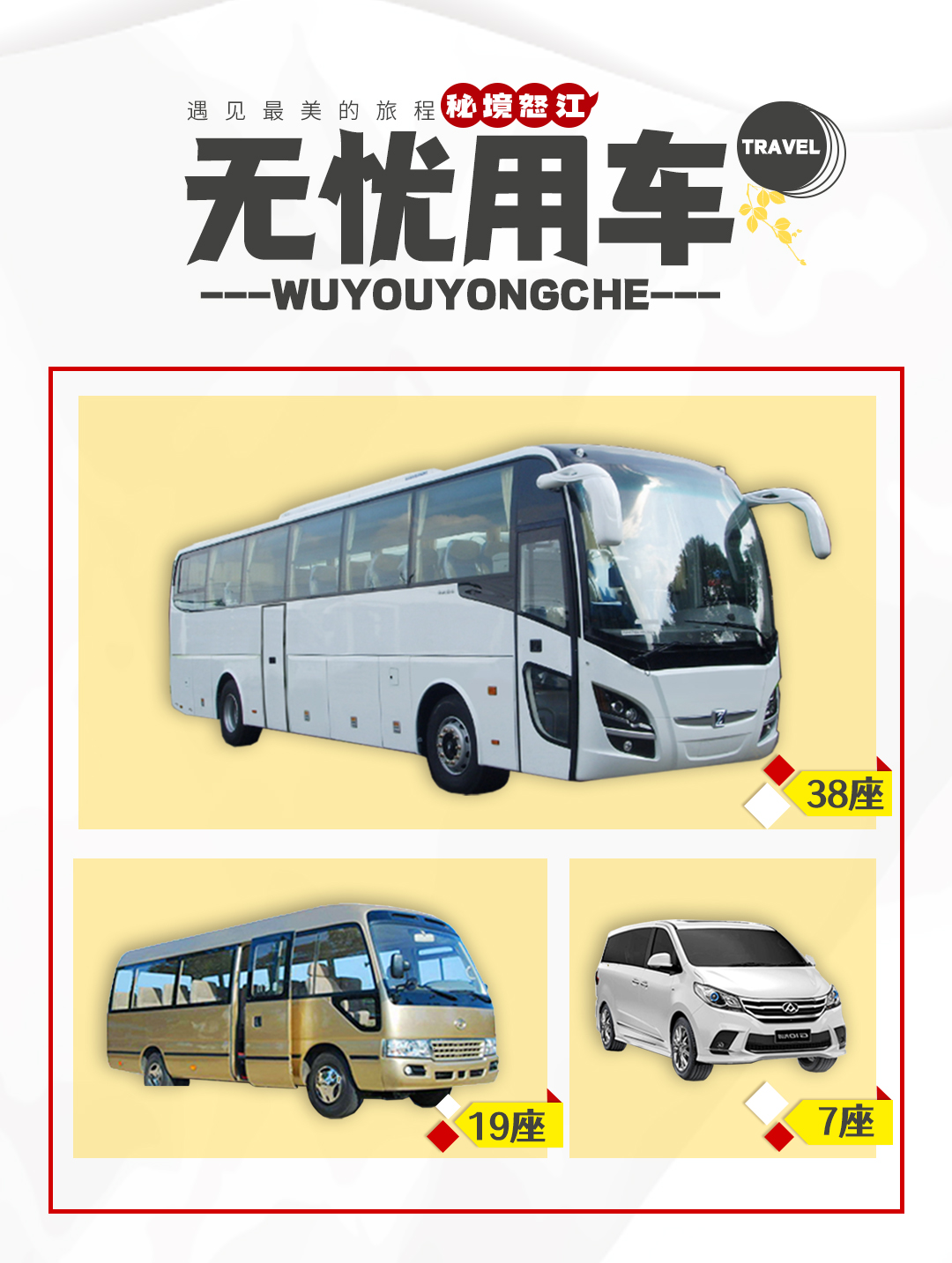 1、全程包车费用(手续齐全的正规旅游车);