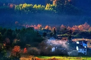 06:30 为日出+晨雾时间,选好最佳拍摄位置,等待日出,在金色的阳光照耀下,白墙黑瓦,早晨的炊烟,高大的红枫,形成一幅美丽无比的国画,沉醉其中,不能自已...
