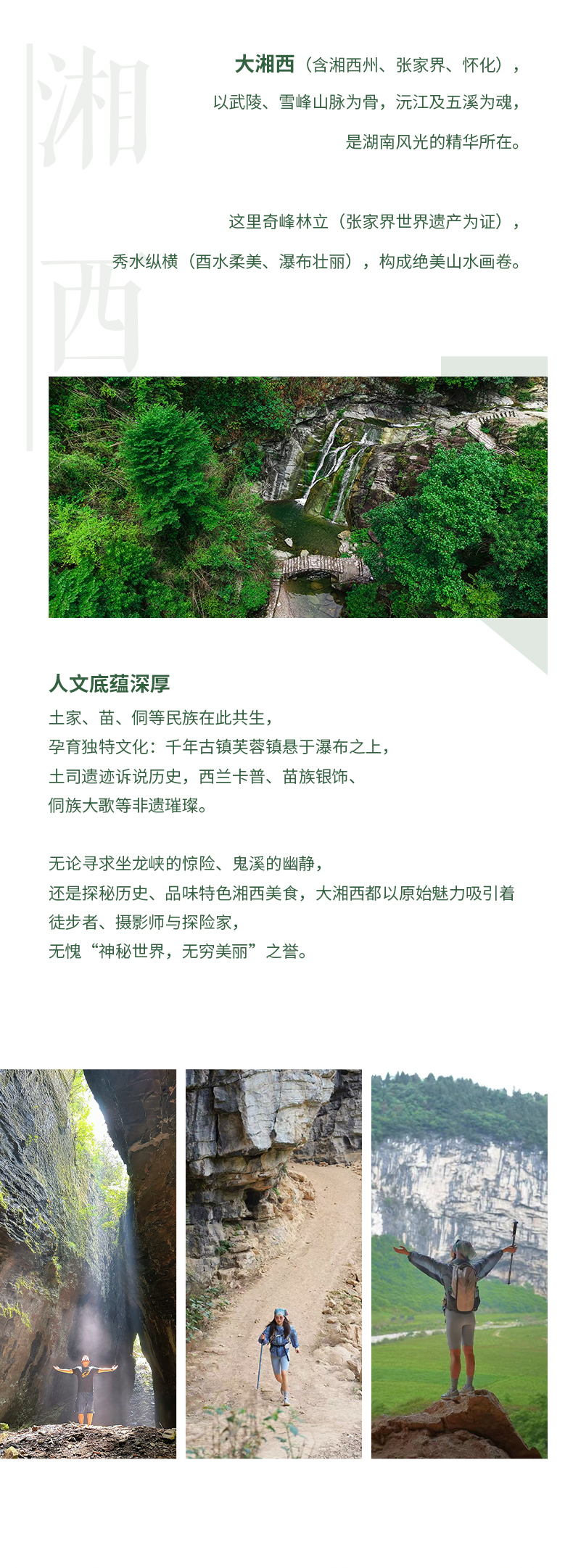 早餐后乘车前往户外圣地——槟榔谷。徒步“天使之城”:沿幽深曲折的暗河河道摸索前行,经历“柳暗花明”的豁然开朗。穿越秘境“夹儿沟”,穿行于一线天般的峡谷,感受峰回路转的景致。徒步结束后,返回张家界西站散团(预计17:00前到达张家界西)。需返回长沙的贵宾,可继续乘坐大巴日返程)。