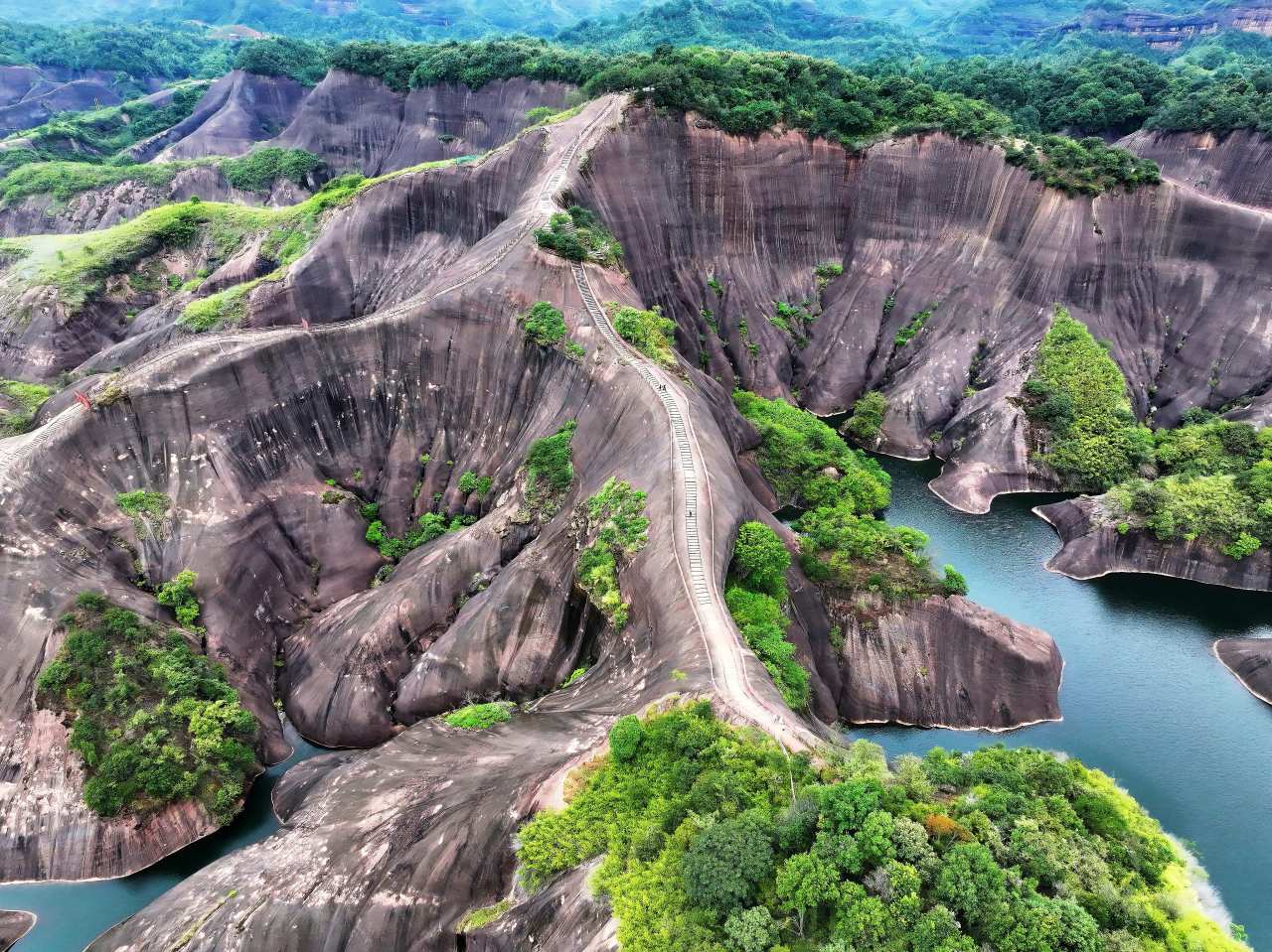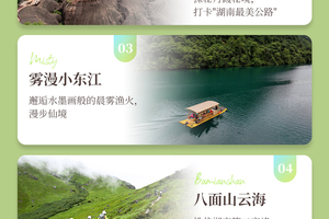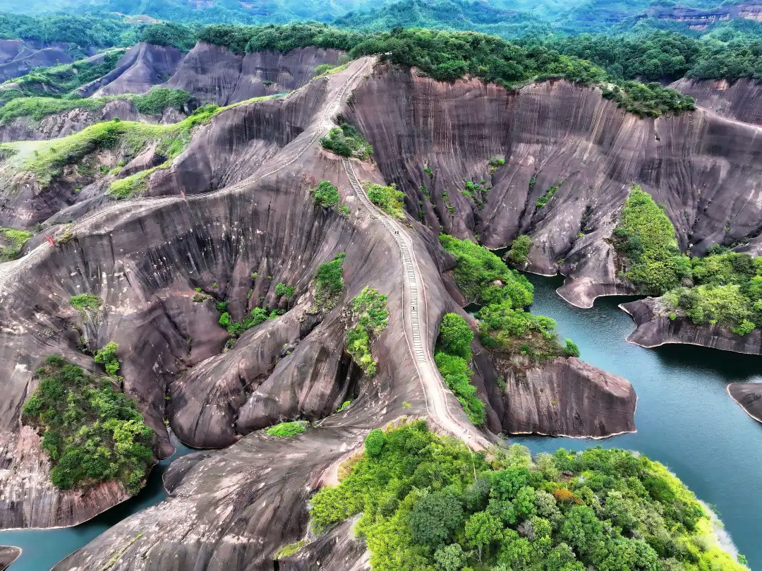 抵达资兴市区,自由午餐(推荐品尝东江鱼或郴州鱼粉)下午徒步马皇丘公路(约2公里)被称为"湖南最美丹霞公路",红色岩壁与蜿蜒公路形成强烈视觉冲击