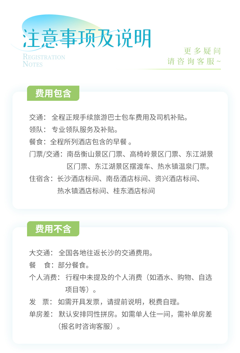 2. 活动行程中如遇堵车、天气等原因,领队会根据实际情况对行程做出相应调整,希望队友们理解。
