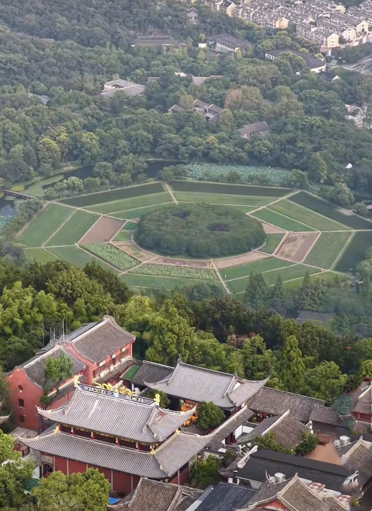 八卦田齐齐整整有八只角,把田分成八丘。八丘田上种着八种不同的庄稼。一年四季,八种庄稼呈现出八种不同的颜色。在八丘田当中,有个圆圆的土墩,那就是半阴半阳的一个太极图。